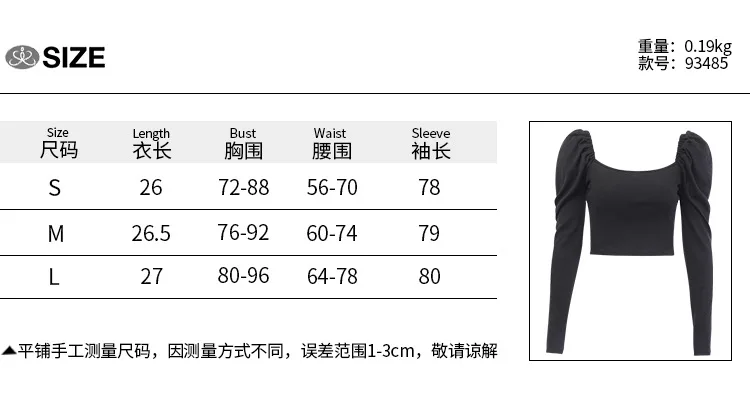 Новая Осенняя короткая футболка с квадратным воротником, Женская Футболка с рукавами-фонариками в стиле ретро, облегающий сексуальный топ для фитнеса, футболки