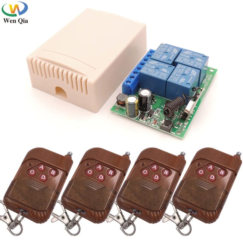 Универсальный пульт дистанционного управления, 433 МГц, 220 В переменного тока, 10 А, 4 канала, релейный приемник и передатчик для универсальных гаражных дверей, устройство управления воротами