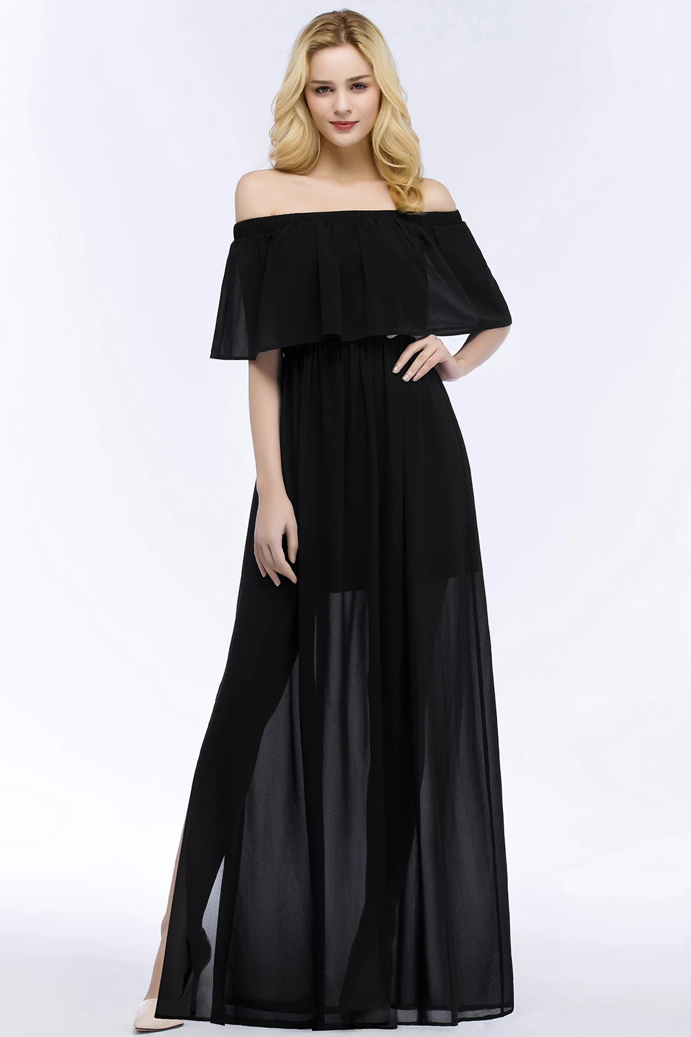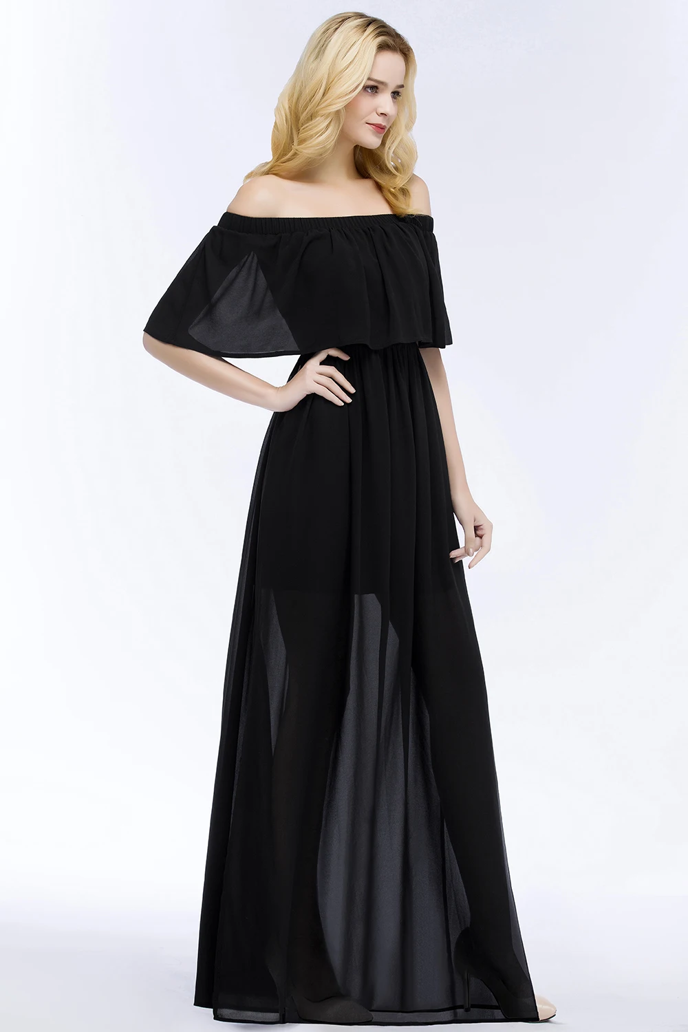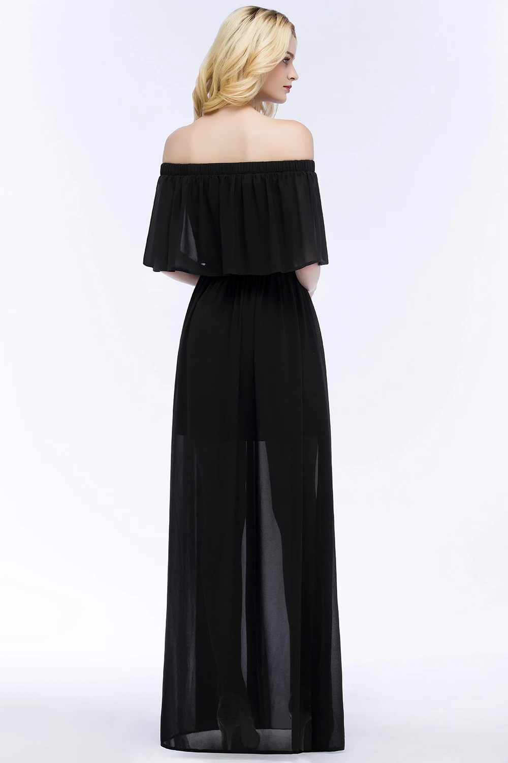Женское шифоновое вечернее платье It's yiiya, Черное длинное платье с открытыми плечами, вырезом лодочкой и разрезом на лето 2019