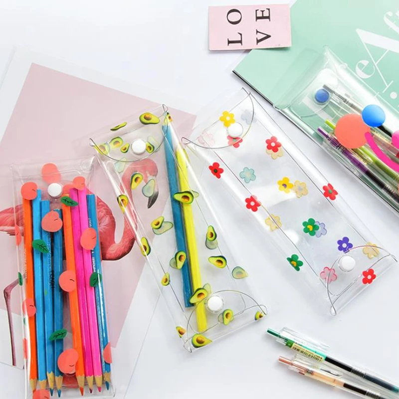 Чехол для карандашей с авокадо для девочек, милый школьный пенал, милый чехол для карандашей, прозрачный чехол для карандашей, школьные принадлежности для учеников
