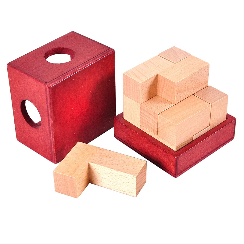 Деревянный сома-куб Tetris IQ, красная деревянная коробка с кубиком-головоломкой, логическая головоломка, деревянные игры, игрушки, 3D Пазлы для взрослых, детская игрушка