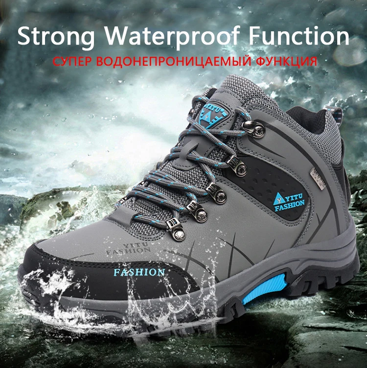 JUNJARM Брендовые мужские зимние ботинки теплые супер мужские высококачественные водонепроницаемые кожаные кроссовки уличные мужские походные ботинки Рабочая обувь