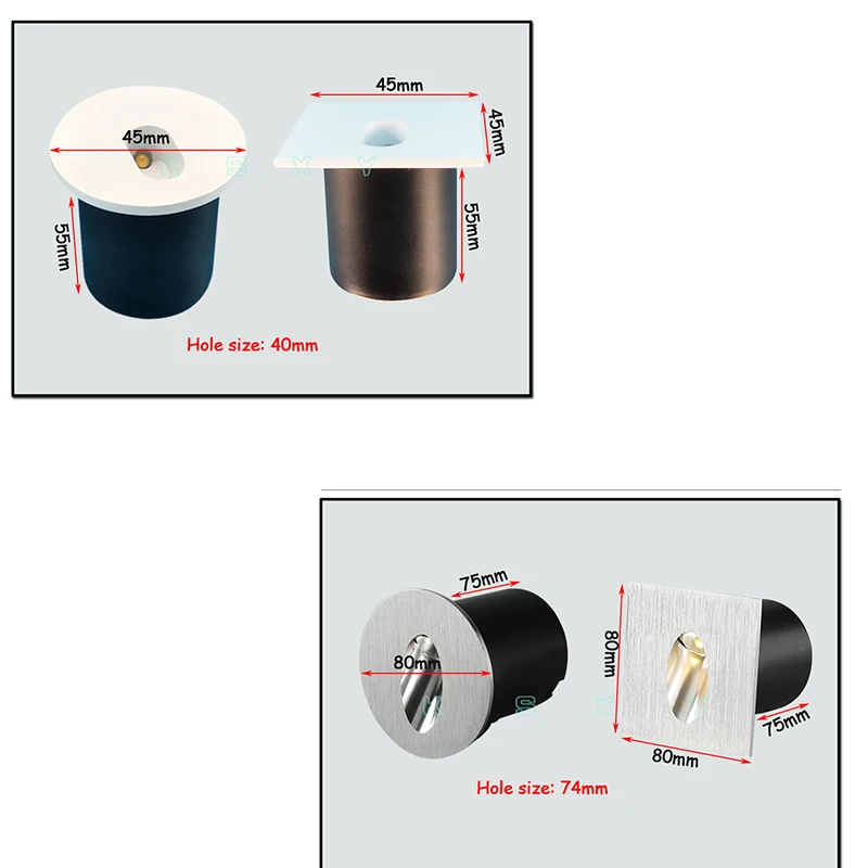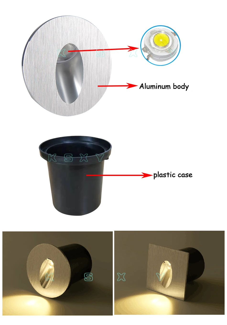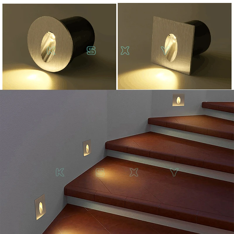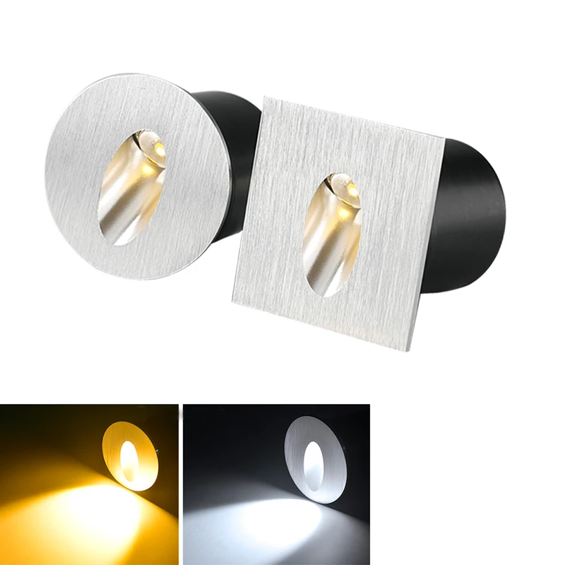 Встраиваемый светодиодный светильник для лестницы, 1 Вт, 3 Вт, алюминиевая квадратная и круглая лампа для бетонных стен, лестниц, светильник