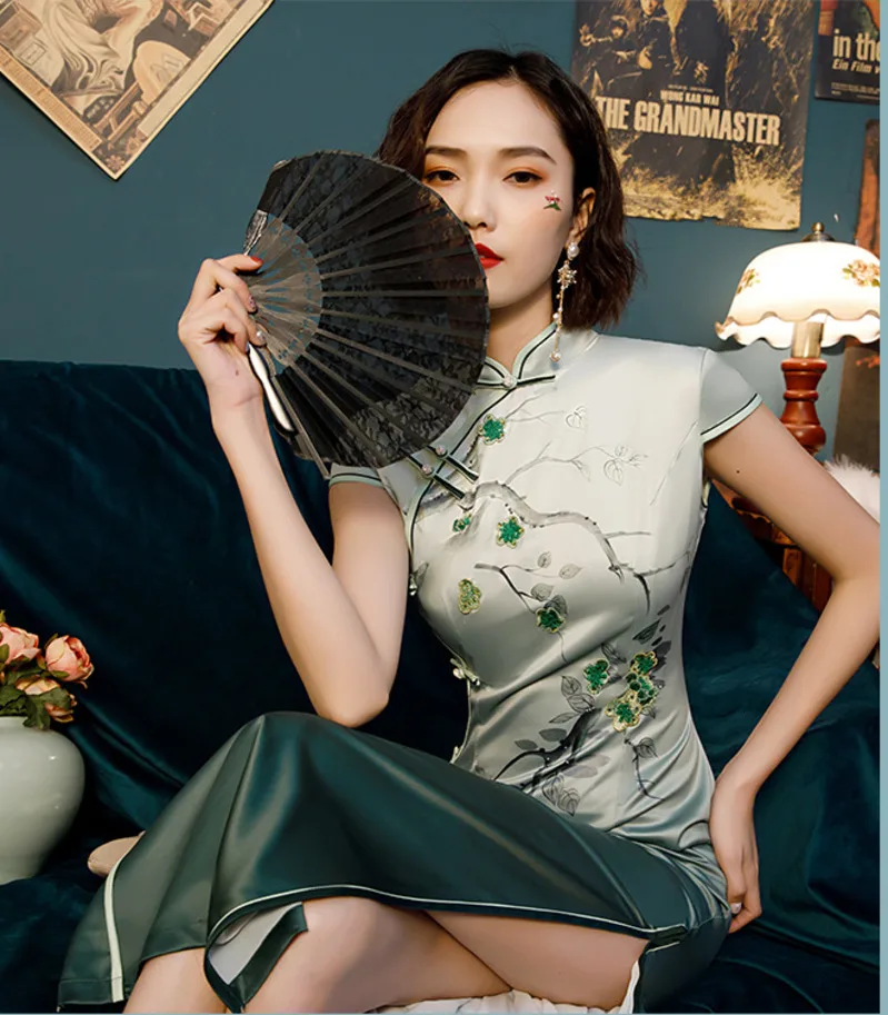 Женское винтажное платье Ципао Sheng Coco, зеленое платье в китайск...