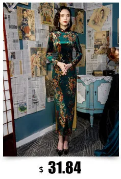 Женское длинное платье Ципао, традиционное китайское платье Ципао с...