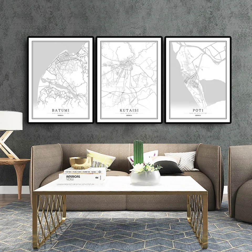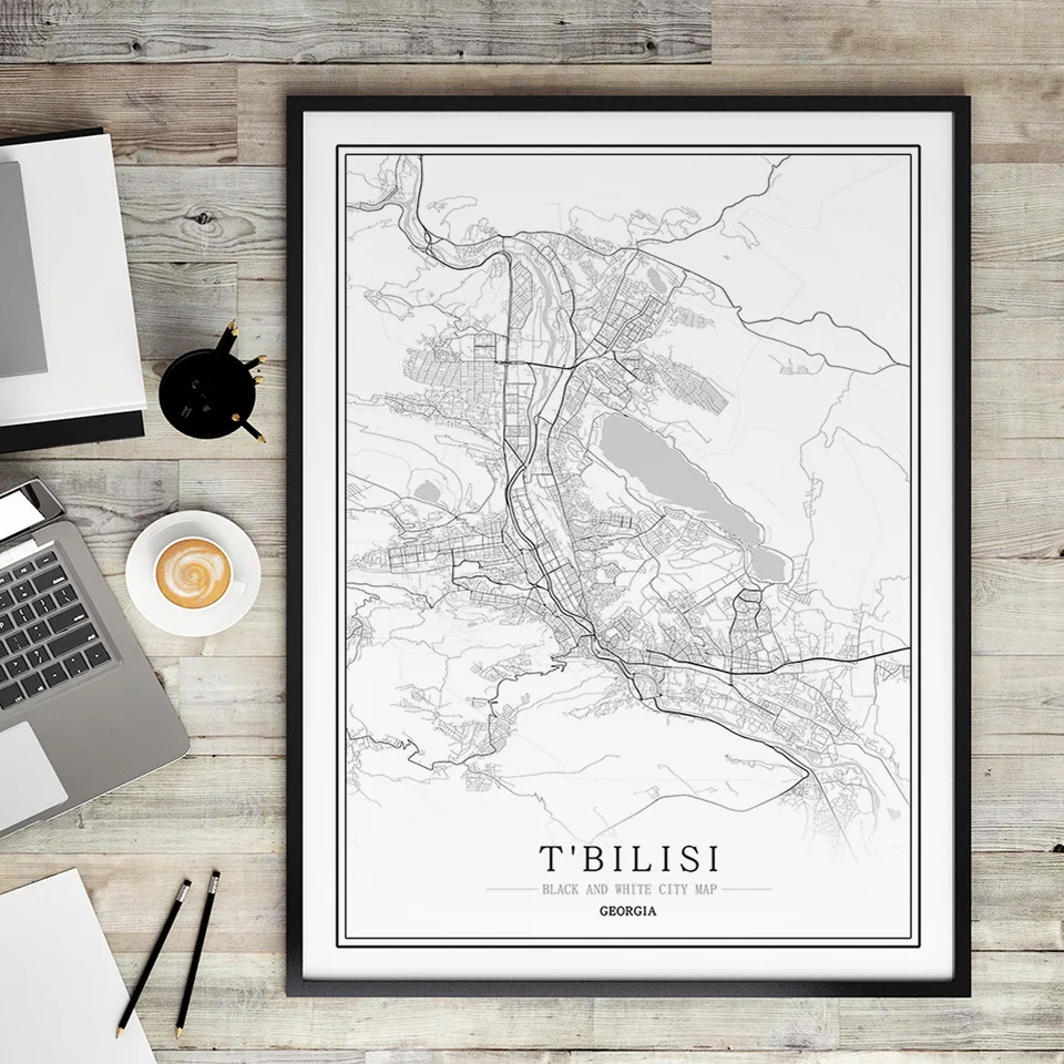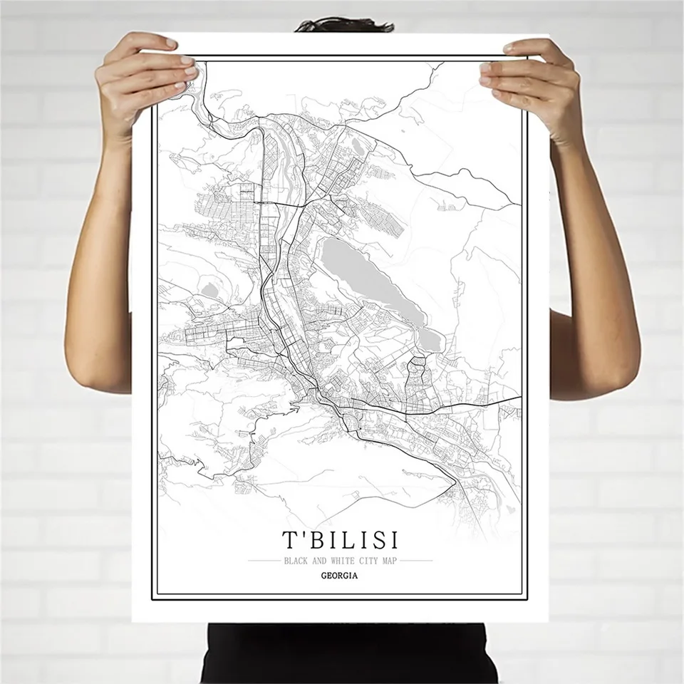 Черно-белая карта города Джорджии плакат Скандинавская гостиная Тбилиси Поти настенное искусство домашний декор холст живопись креативный подарок