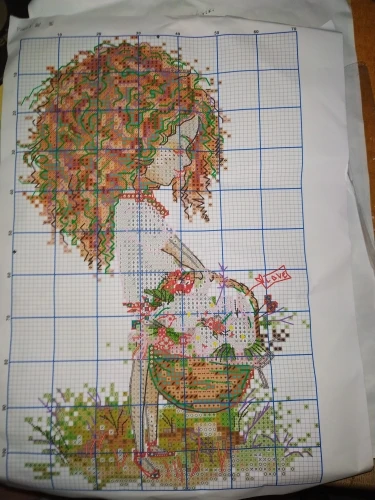 Девушка ангел кудрявая с корзиной Набор для вышивания крестиком жив...