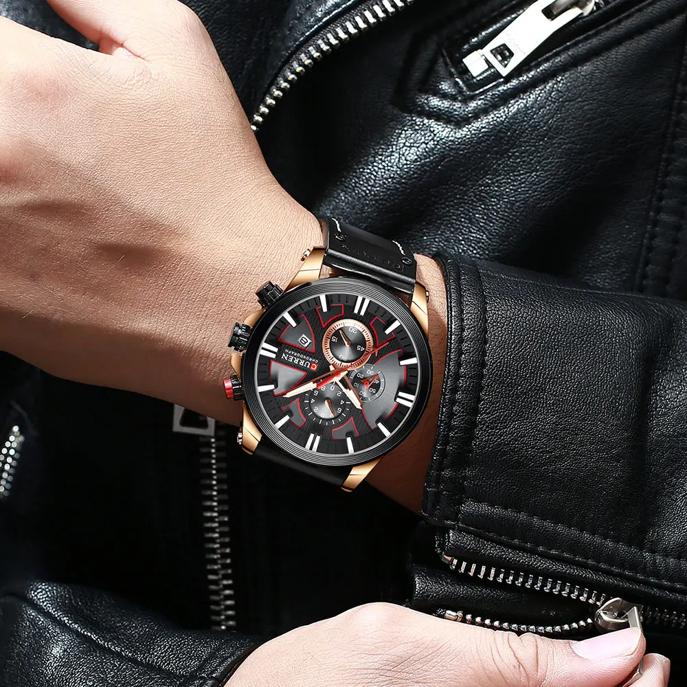 Мужские наручные часы CURREN, Роскошные Кварцевые часы с кожаным ре...