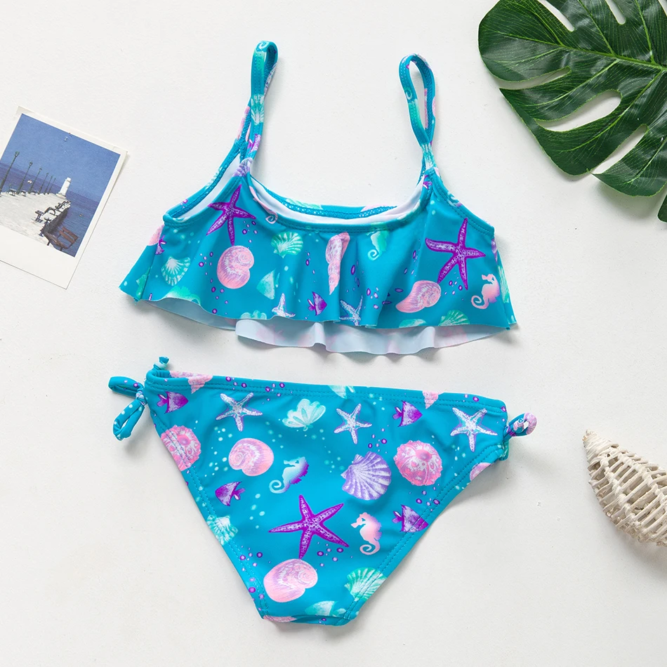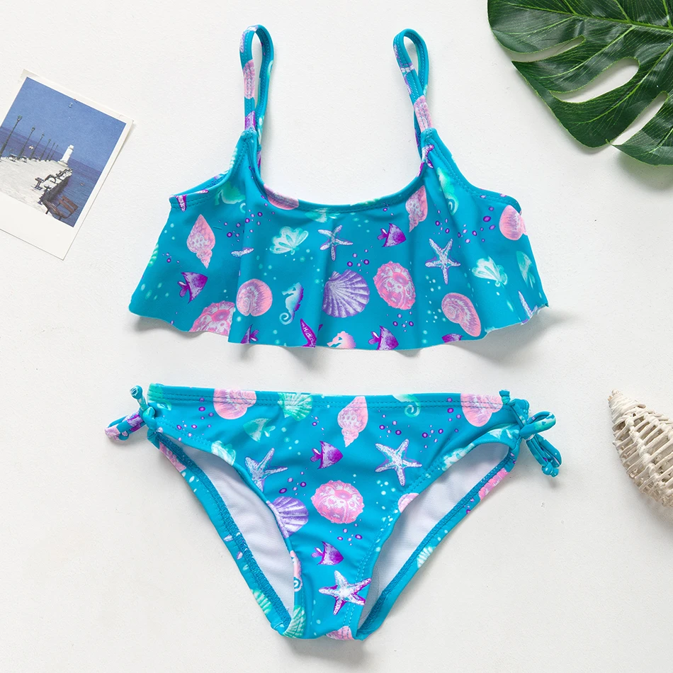 Женский купальный костюм для девочек 2-8 лет, летний купальный костюм из двух предметов с оборками, пляжная одежда для младенцев, 2019