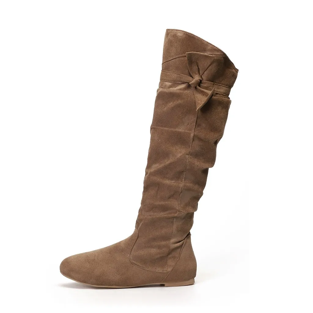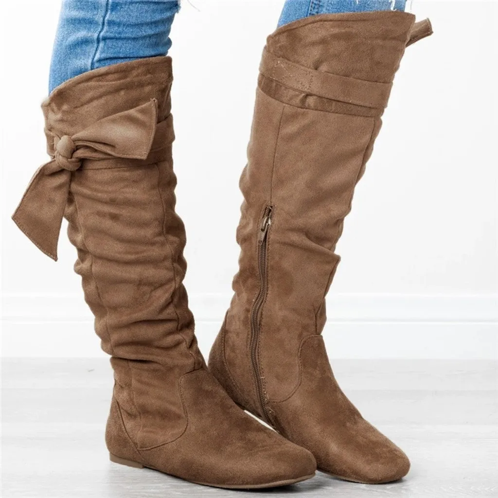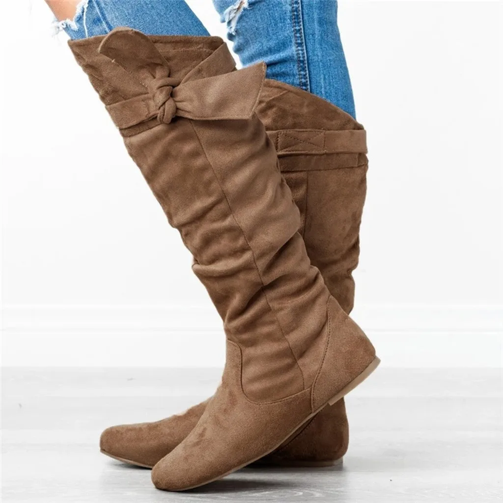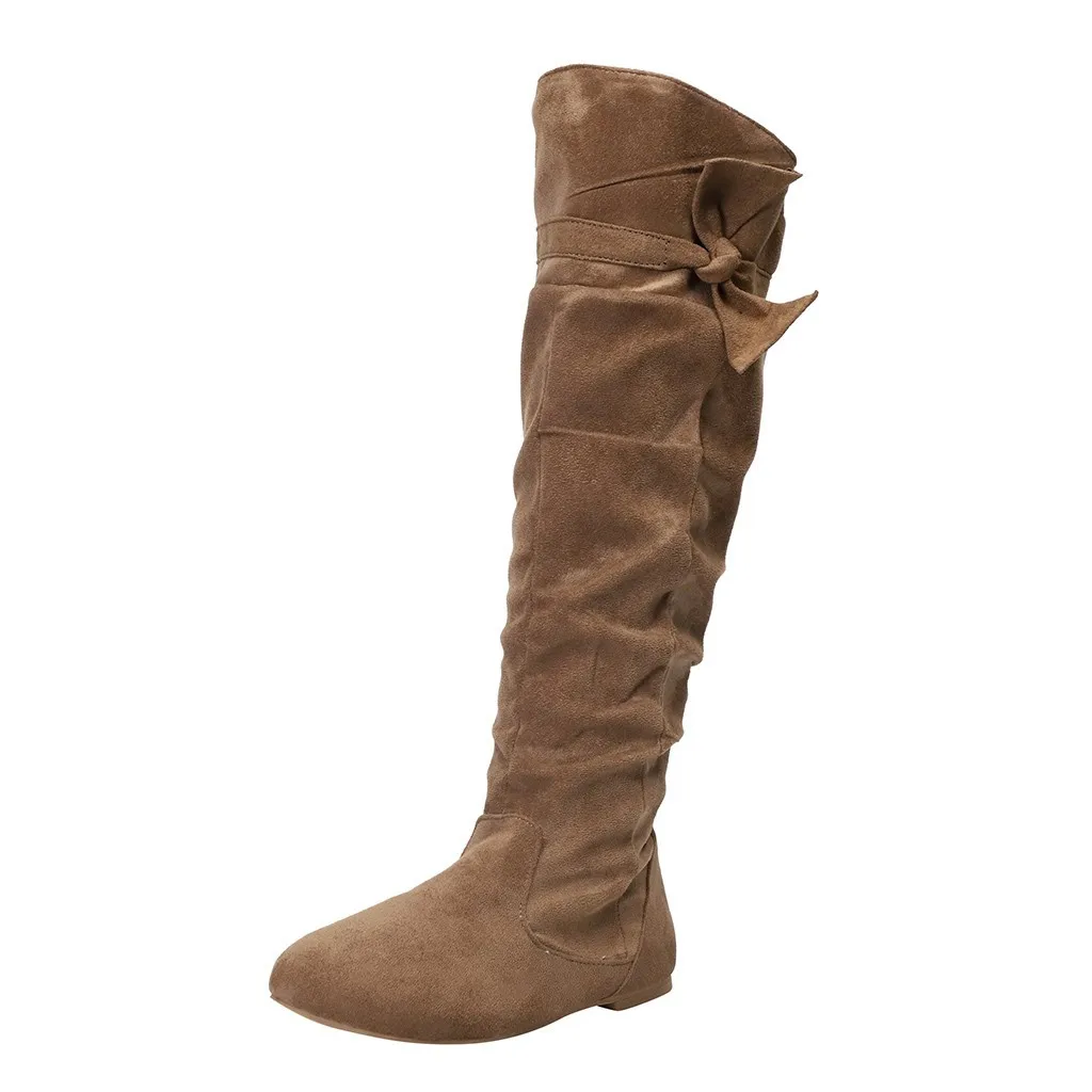 Длинные кожаные сапоги, женские зимние сапоги, модные красивые сапоги до колена с узлом, сапоги на низком каблуке, женские зимние сапоги 2019