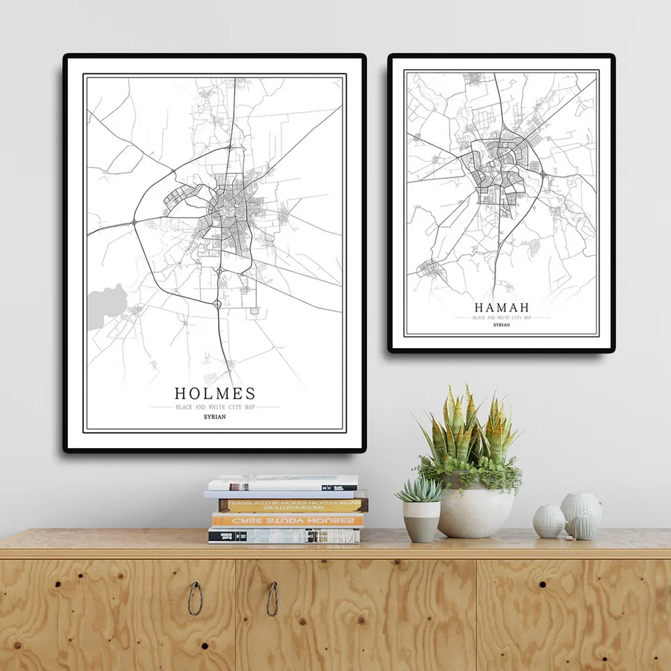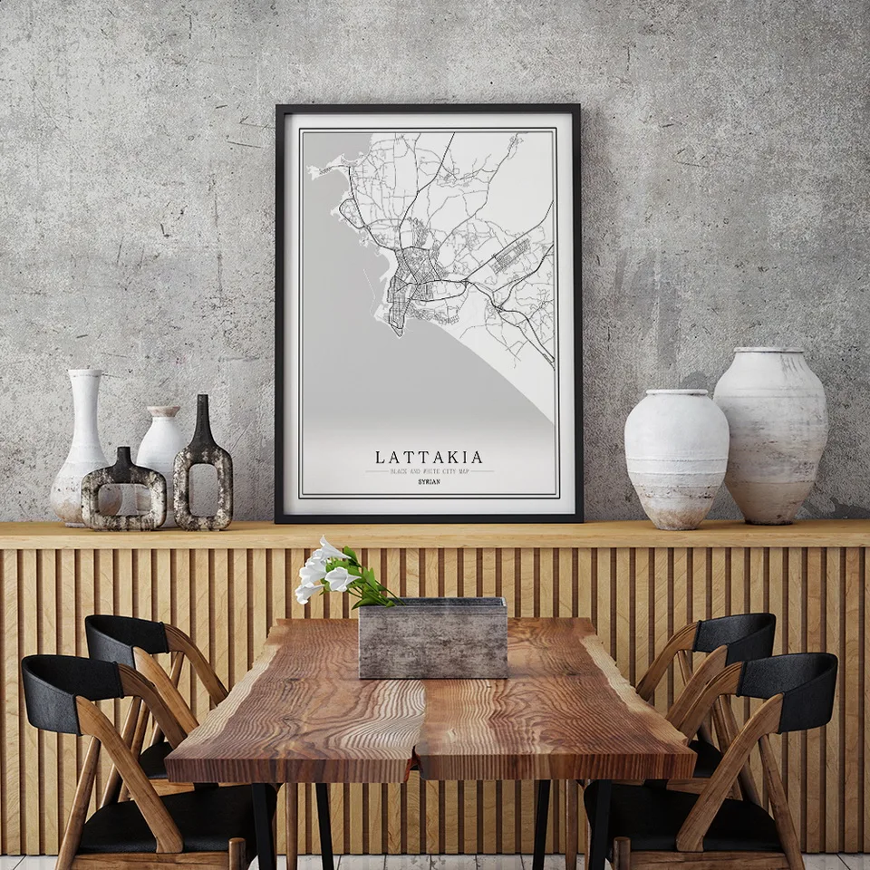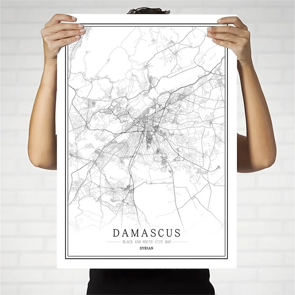 Черно-белый постер с картой города, скандинавский постер для гостиной, Дамаск, латтакия, настенный Декор для дома, Картина на холсте, креативный подарок