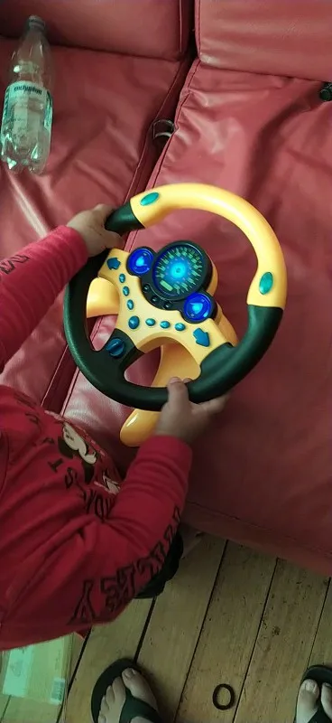 Очень хорошая игрушка. Мой сын любит играть с ним. Звук не слишком громкий. Мы не будем отвлекаться во время вождения.
