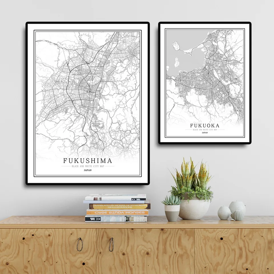 Японская черно-белая карта города, плакат, Скандинавская гостиная, Токио, Кобе, Киотский настенный Рисунок, домашний декор, холст, живопись, креативный подарок