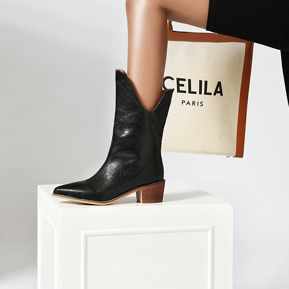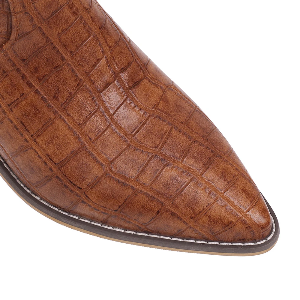 Женские ковбойские полусапожки на танкетке, с острым носком