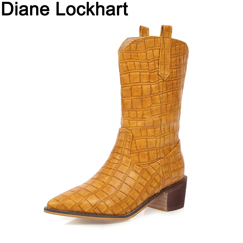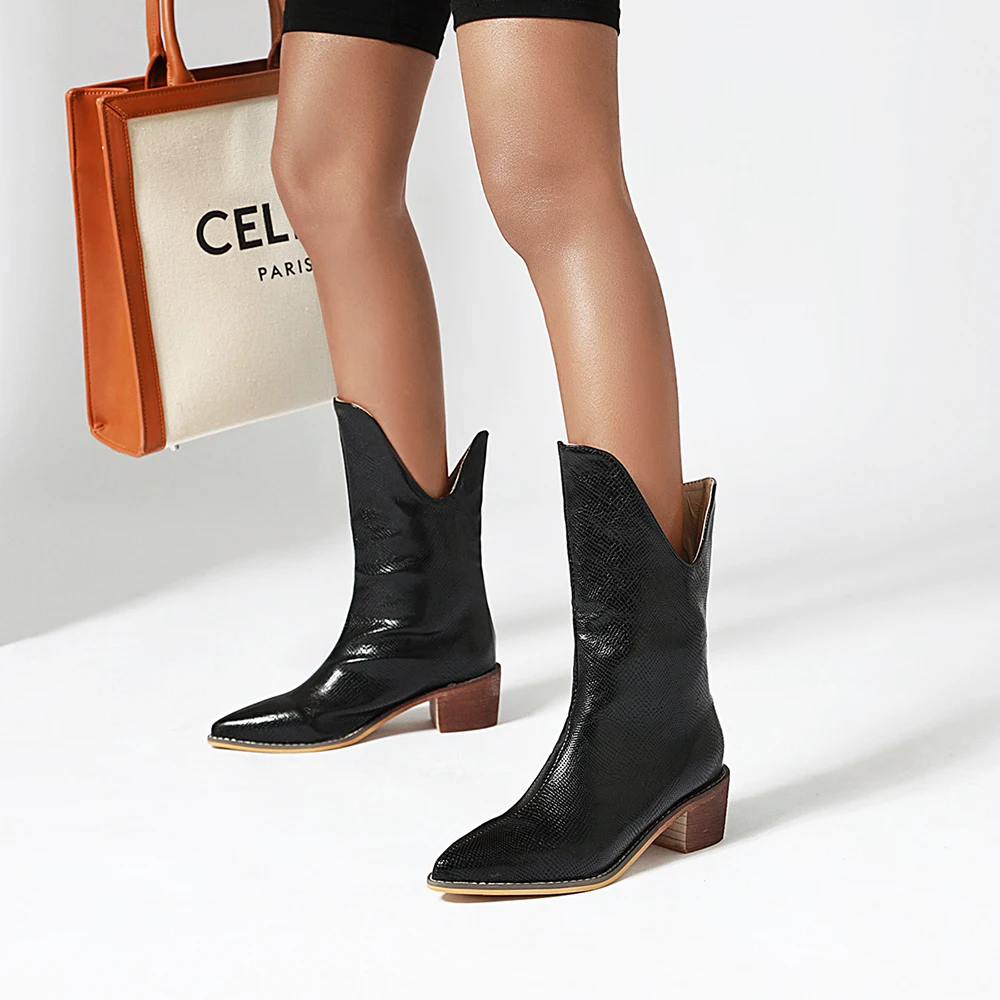 Женские ковбойские ботинки из искусственной кожи, до щиколотки, на ...