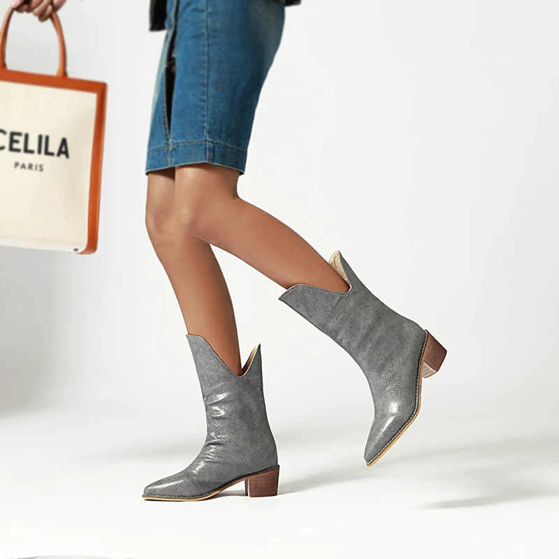 Женские мотоциклетные ковбойские ботинки, короткие казаки из змеино...