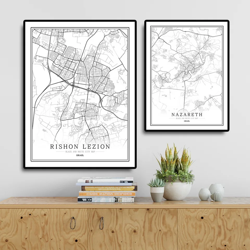 Израиль черно-белая карта города плакат Скандинавская гостиная Jerusalem Natanya настенное искусство домашний декор холст живопись креативный подарок