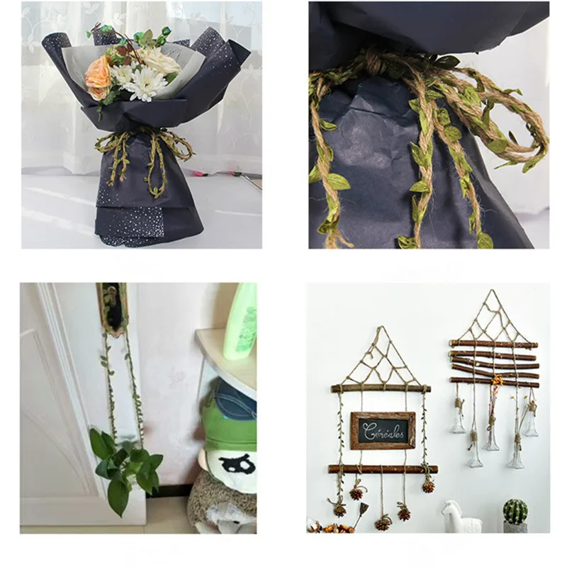 Джутовая веревка с натуральными искусственными листьями, джутовая л...