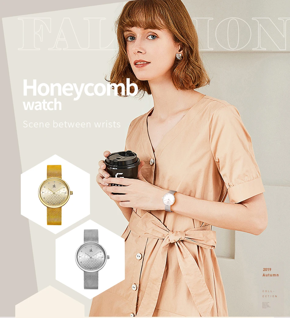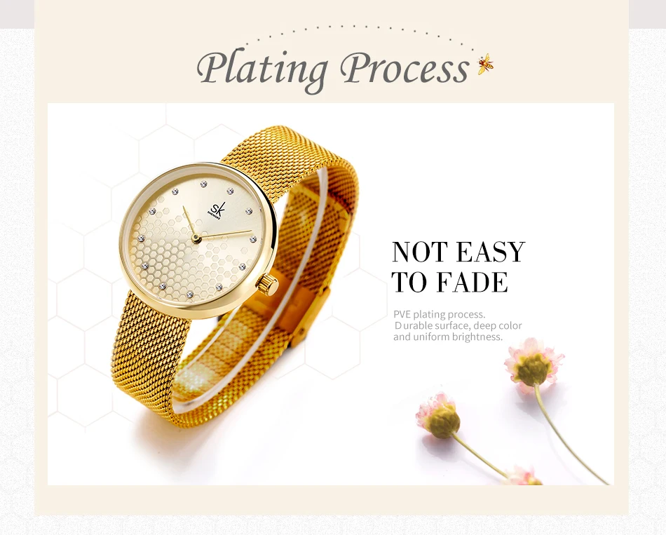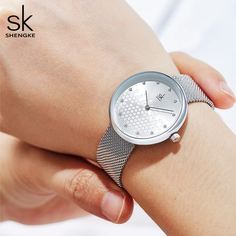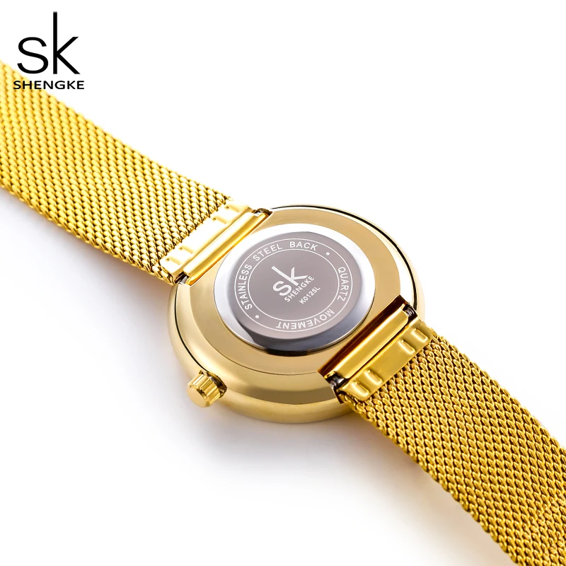 Элегантные женские кварцевые наручные часы SHENGKE, золотистые стразы