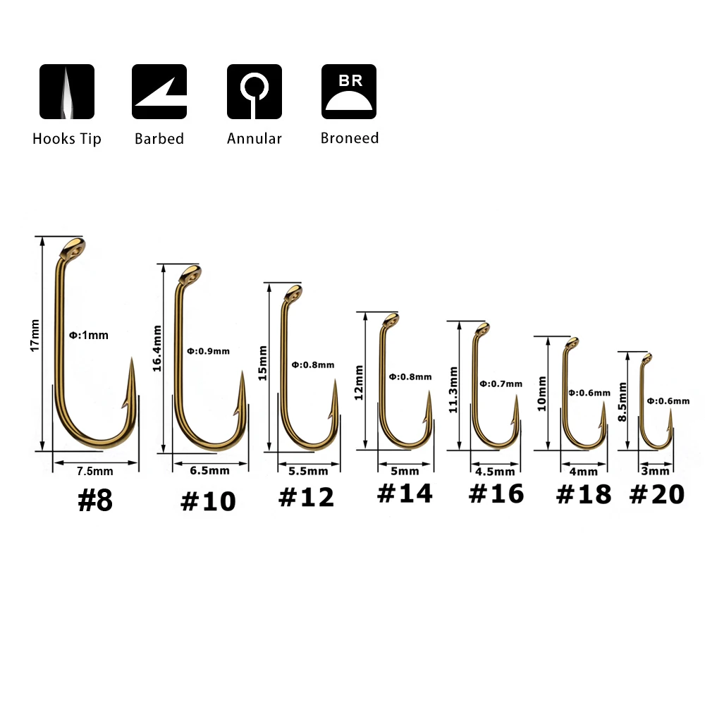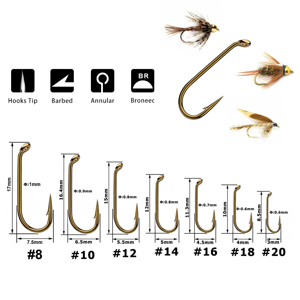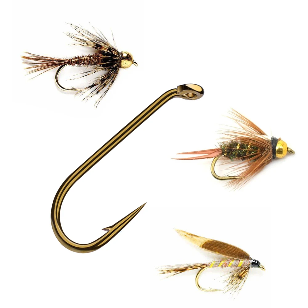 Крючок для вязания мушек Nymph, 50 шт.упак., для влажной рыбалки с колючей форелью, бронзового цвета, для заячьих ушей, размер 8, 12, 14, 16, 18, 20