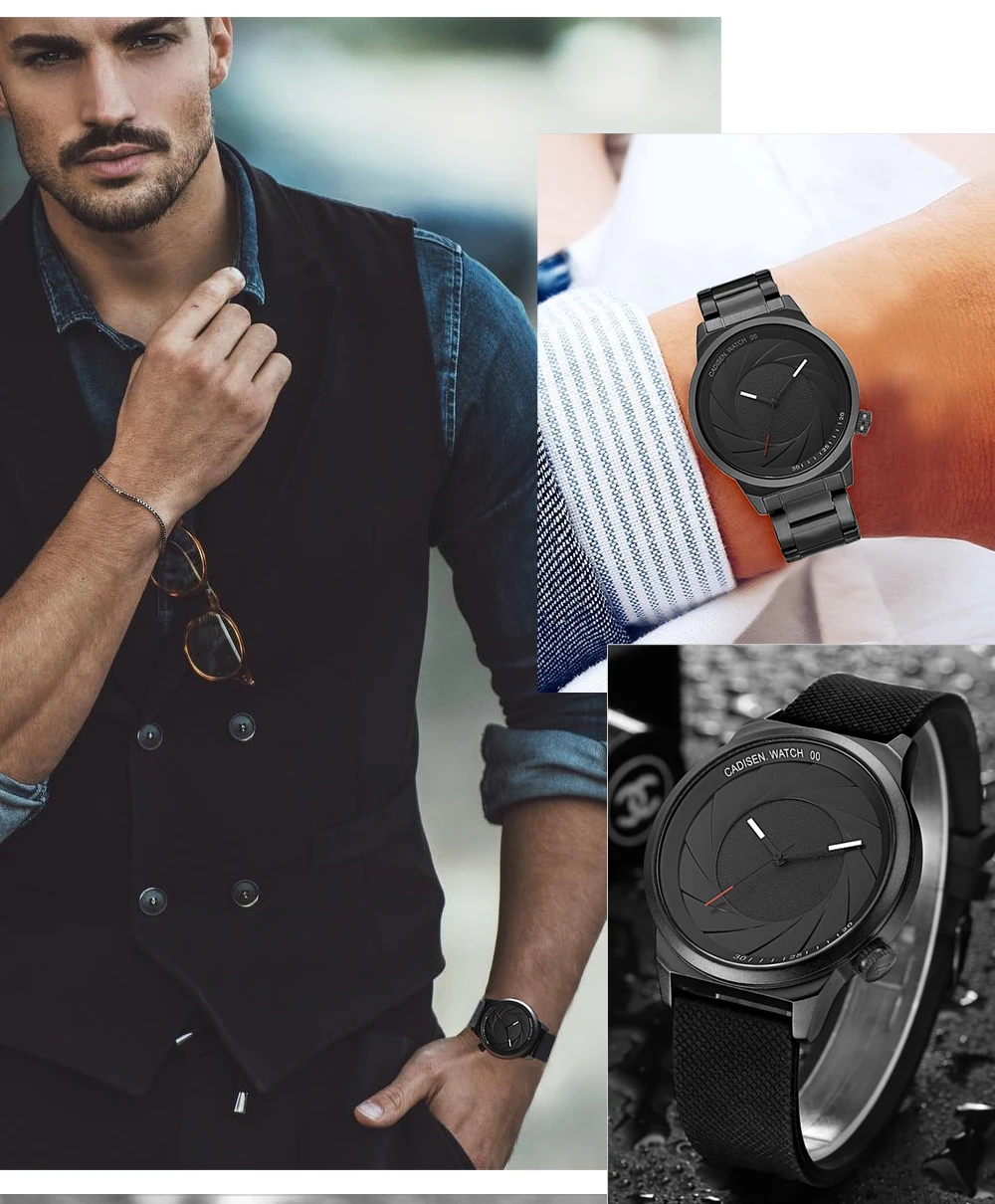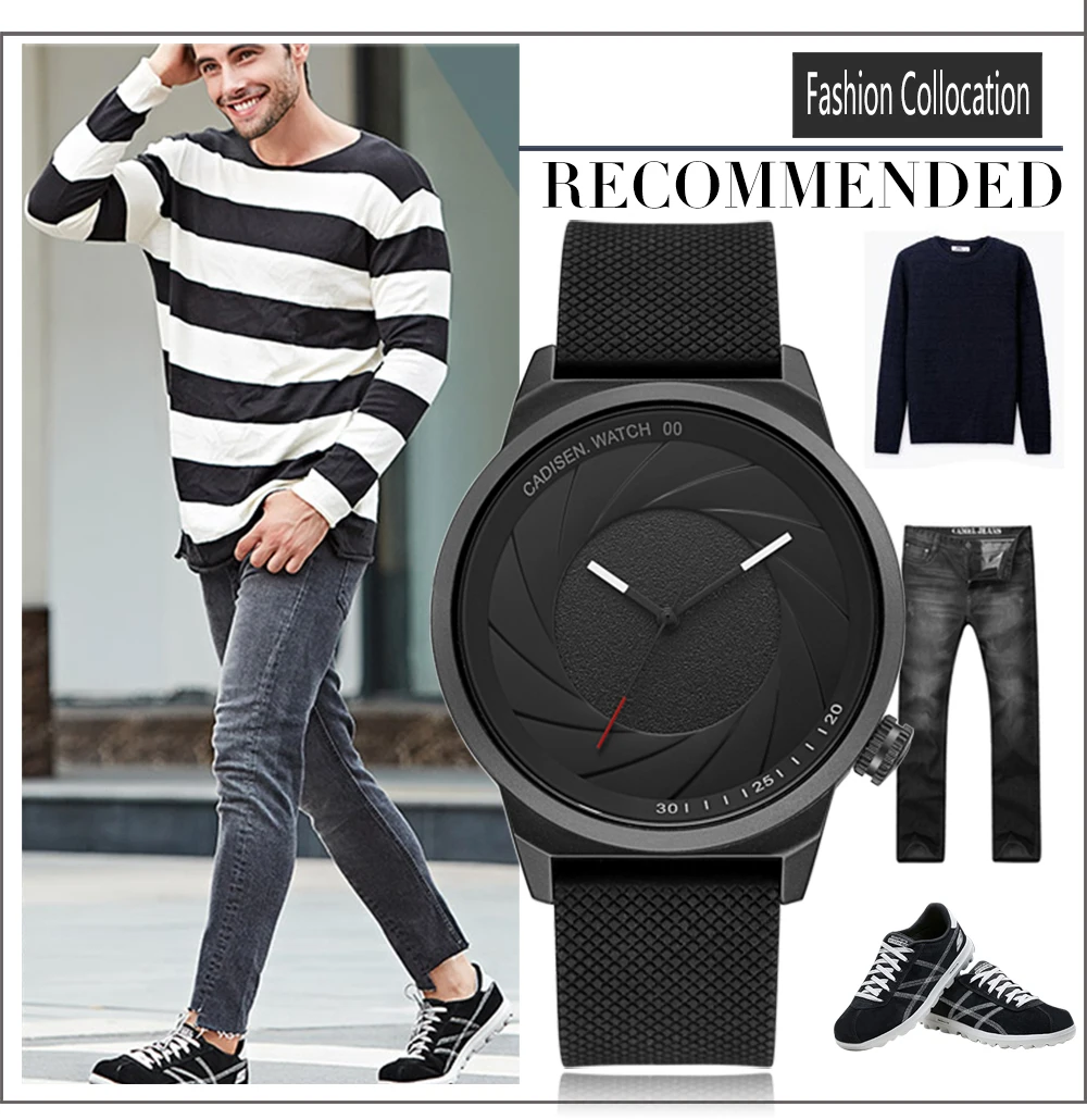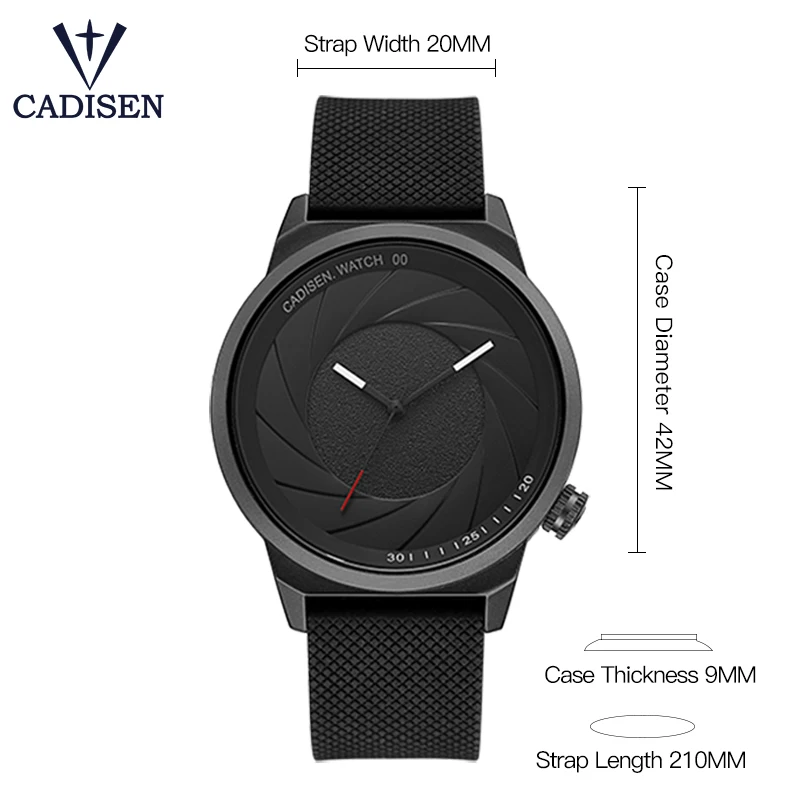 CADISEN Роскошные мужские часы Военные Eubber наручные часы Бизнес Спортивные Простые повседневные мужские часы 3ATM водонепроницаемые