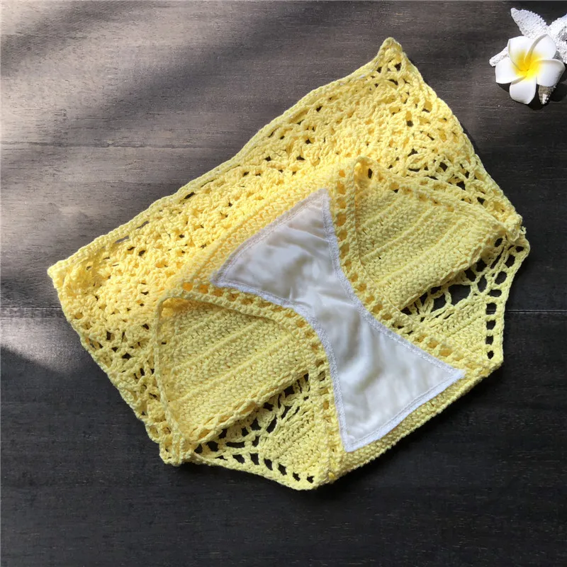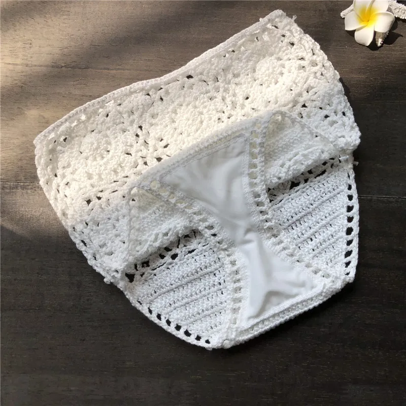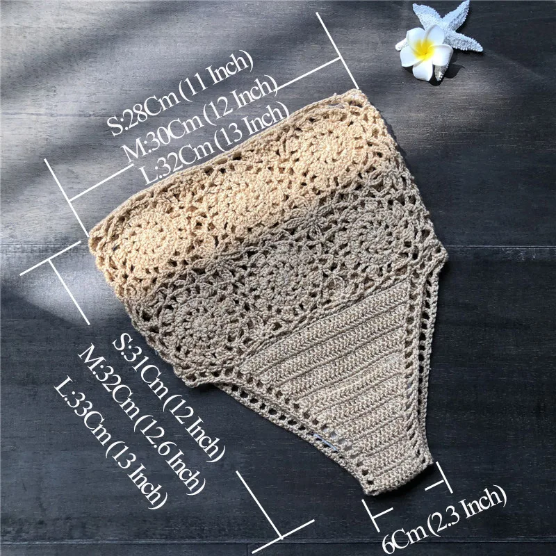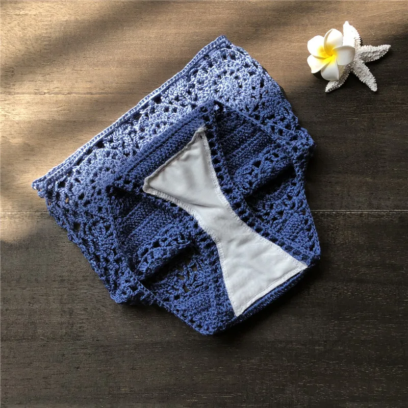 Бикини с высокой талией, женские стринги, вязаный купальник с цветочным узором, шорты, Бразильское бикини, купальник