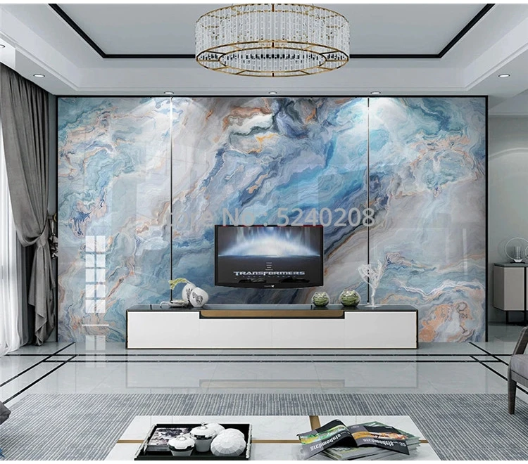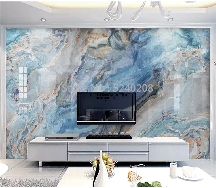 Фотообои, современный синий мраморный пейзаж, художественные фрески для гостиной, фона за ТВ, настенное украшение, самоклеящиеся водонепроницаемые 3d-наклейки