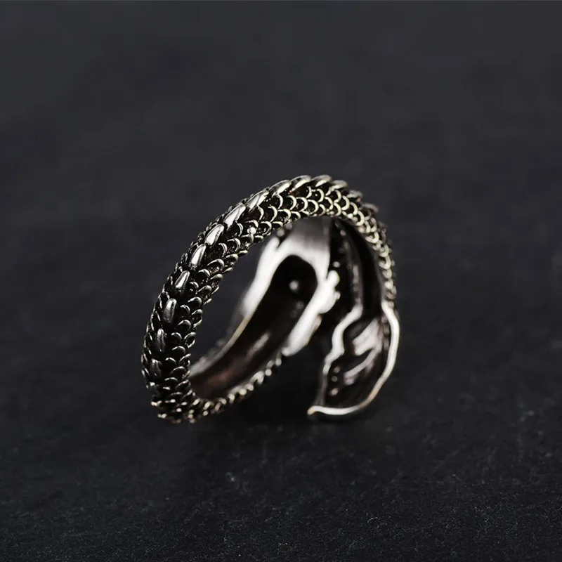 Мужское Винтажное кольцо с драконом, регулируемое кольцо черного и ...