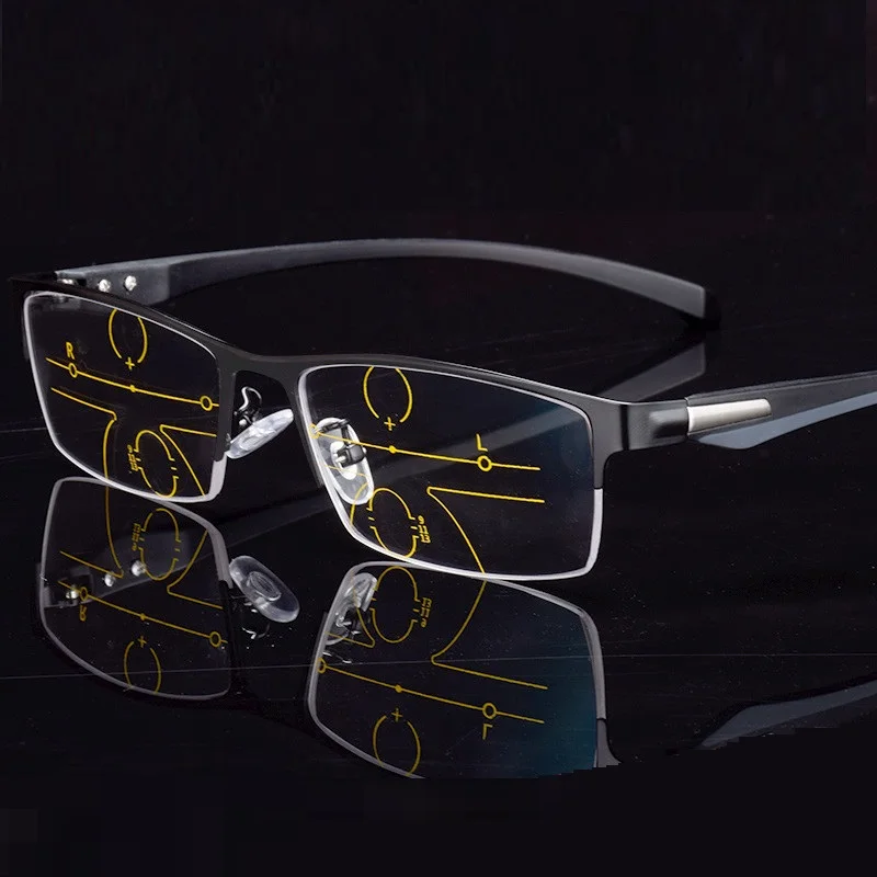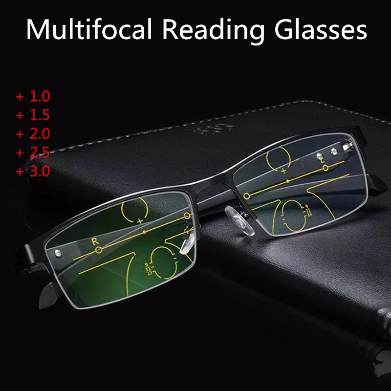 Мультифокальные очки для чтения, мужские, женские, мужские, в металлической полуоправе, прогрессивные бифокальные, с защитой от синего спектра, пресбиопические очки, 1,5, 2,5