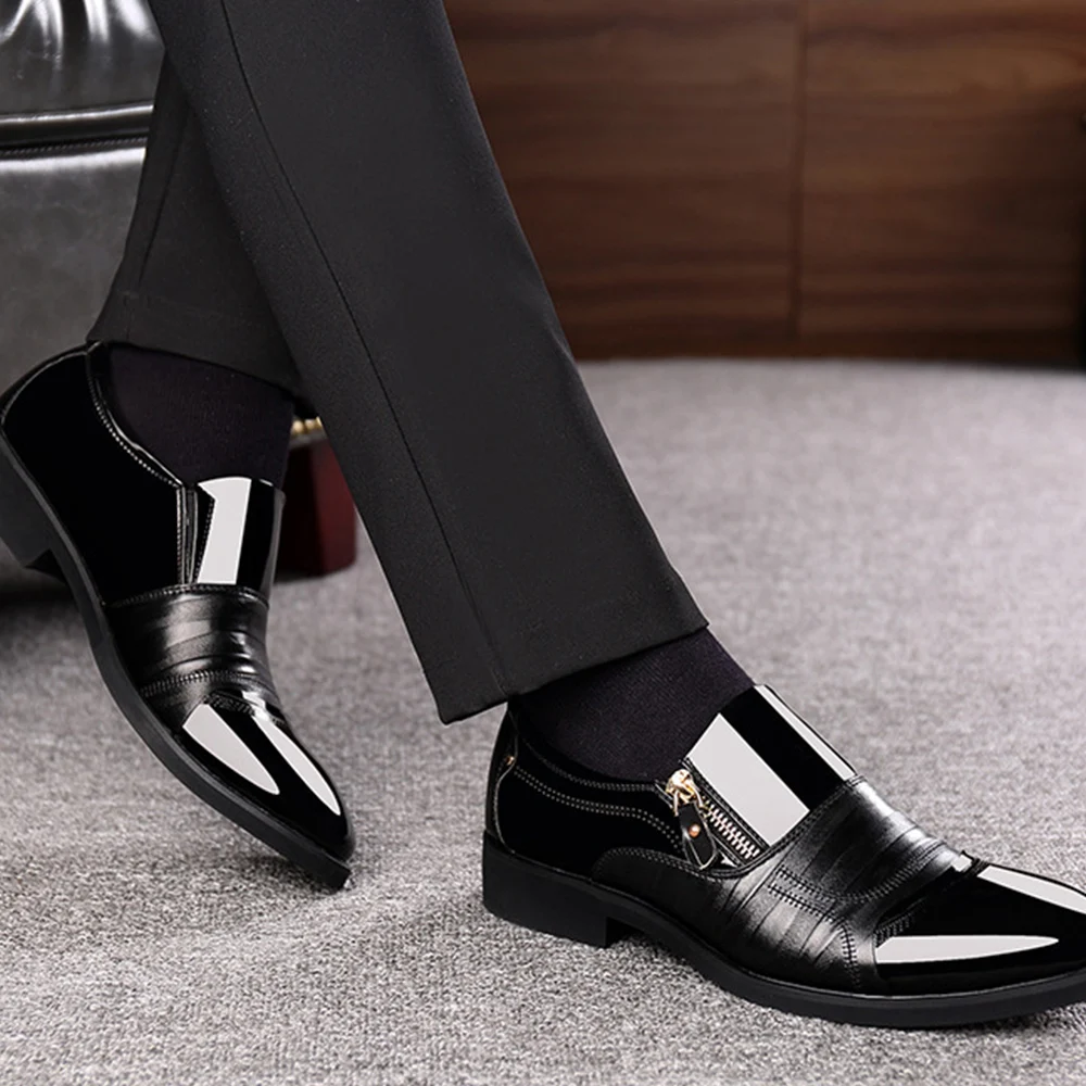Мужская официальная обувь из лакированной кожи; Модельные туфли в деловом стиле с острым носком; Модные классические туфли-оксфорды без застежки для офиса и свадьбы