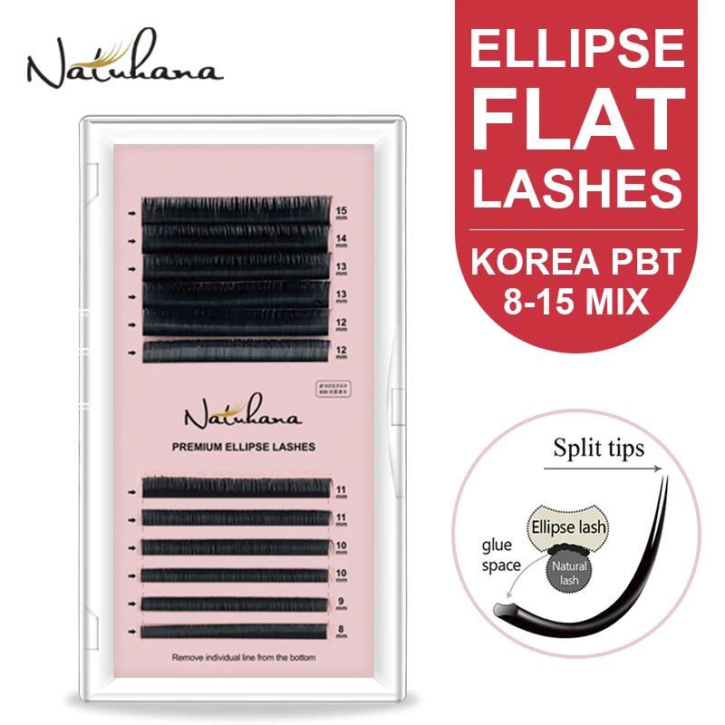 NATUHANA 8 ~ 14 микс эллипса плоские ресницы для наращивания матовые искусственные норковые ресницы индивидуальные раздельные кончики в форме эллипса наращивание ресниц