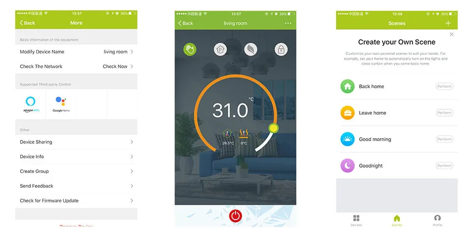 1. Доступны мощные функции, такие как Modbus/Wifi и т. д. 2. Точность 0,5 ℃ сохраняет температуру в пределах установленного Вами уровня. 3. Часы памяти при выключении питания. 4. 5 + 2 (пять рабочих дней, два дня отдыха) шесть программируемых периодов максимальный комфорт и экономичность. 5. Создайте группу термостата для централизованного управления. 6. Интегрирован с Amazon Echo,Google Home,Tmall Genie,IFTTT. 7. Поддержка обмена устройствами с семьей или друзьями. 8. Все языки настройки синхронизируют ваш часовой пояс, адрес и язык. 9. Нет ограничений на добавление термостата в приложении. 10. Поддержка интеллектуальной сцены.