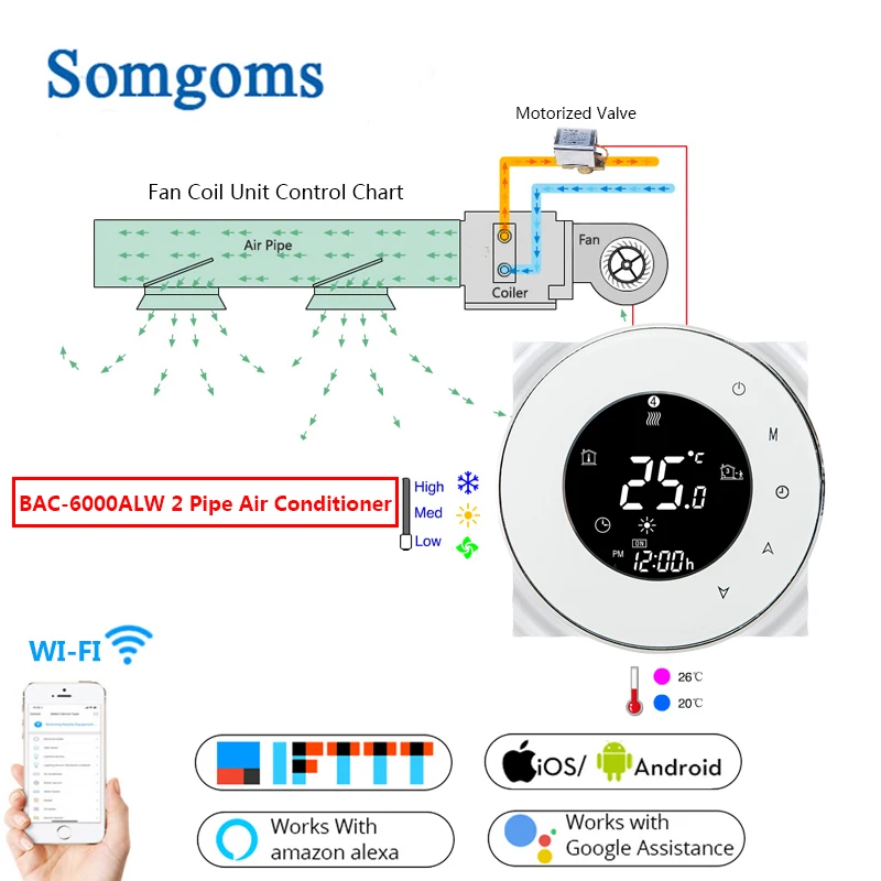 Умный сенсорный термостат с Wi-Fi, контроллер температуры для 2 труб, 4 труб, центральный кондиционер, 3-скоростной блок управления вентиляторной катушкой