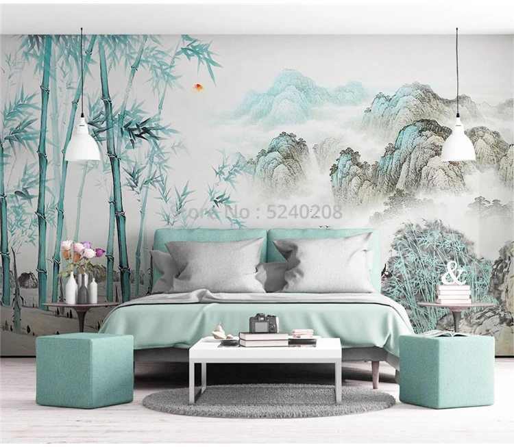 Пользовательские обои 3D в китайском стиле абстрактные чернила пейзаж фотообои с бамбуком Гостиная Кабинет домашний Декор 3D самоклеющиеся водонепроницаемые