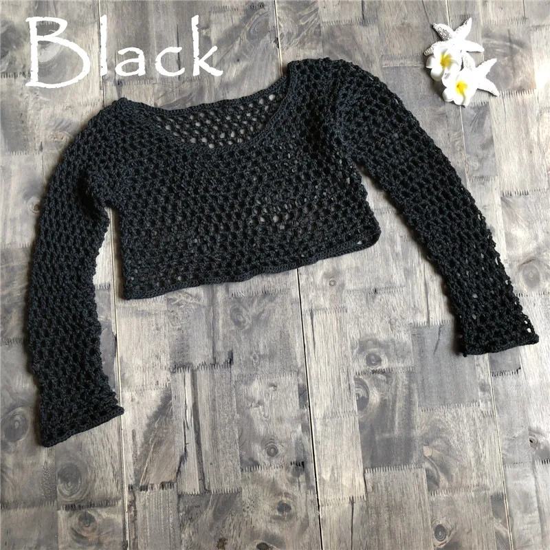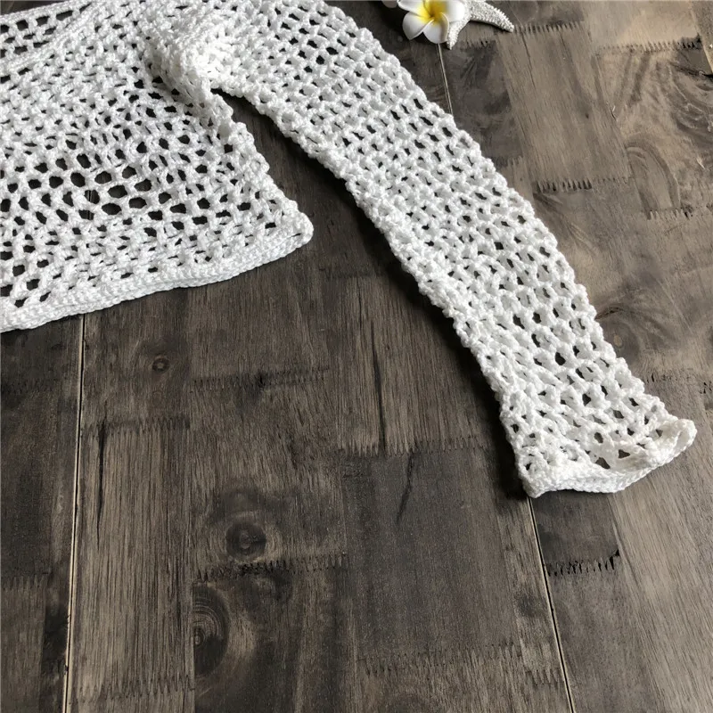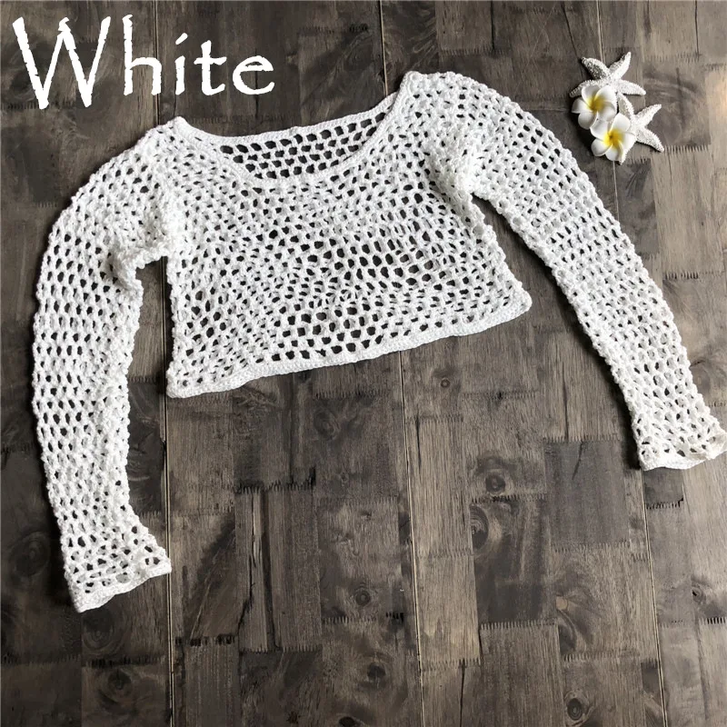 Новая сетчатая накидка на бикини, Пляжная футболка с длинным рукавом, открытый купальный костюм, женская пляжная одежда