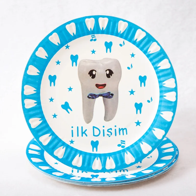 Синий мальчик или розовая девочка новорожденный зуб тема одноразовая посуда чашка тарелка детский Душ пол палочка Dism зубы вечеринка Декор