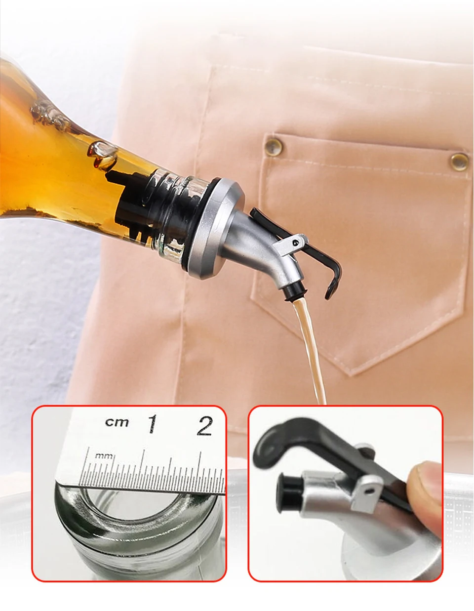 Носик для заливки изготовлен из АБС, силикона, пищевого материала и не ржавеет. Используется в качестве винного разливателя для бутылок ликера или в качестве масляного разливателя для оливкового масла и уксуса. Силиконовая пробка для различных размеров бутылки.