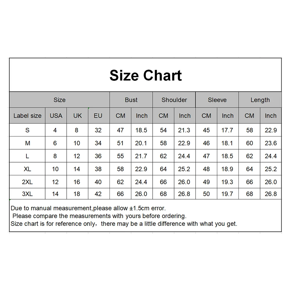 [Наш Размер S] Обхват груди: 94 см/37 ", ширина плеч: 54 см/21,3", длина рукава: 45 см/17,7 ", Длина: 58 см/22,8" (прибл.)