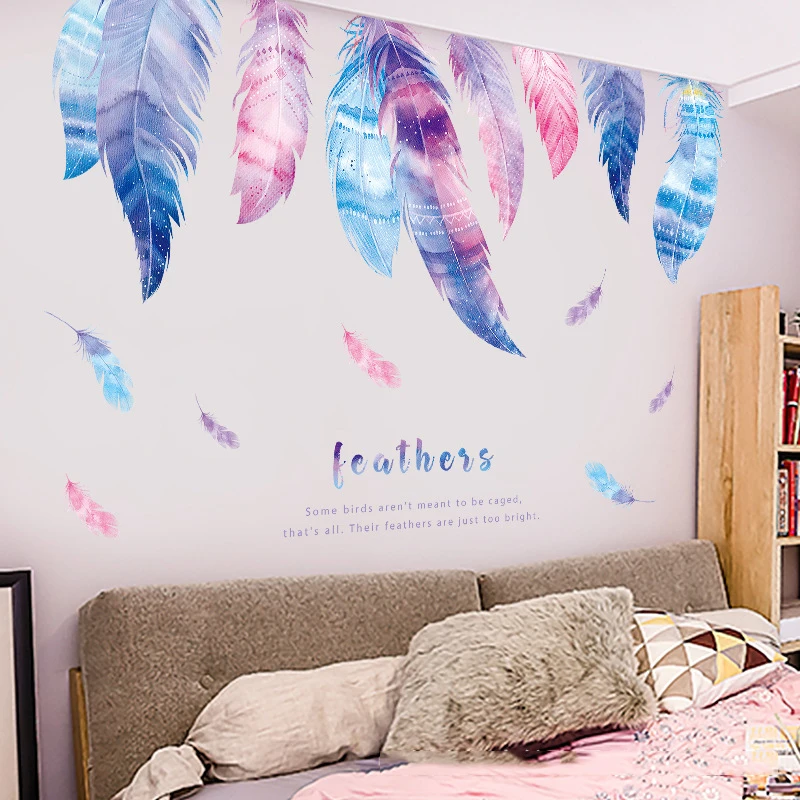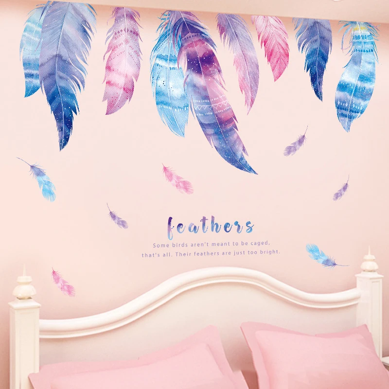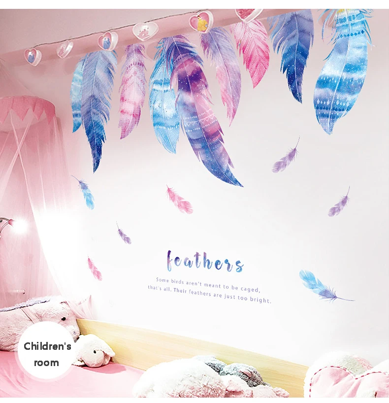 Романтическое украшение для дома с перьями, цветные наклейки на стену с оперением для детской комнаты, модный домашний декор, художественные виниловые наклейки на стену из ПВХ
