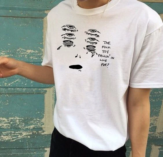 Tumblr гранж белая футболка Fallin' In Love для забавных цитат Футболка Мужская Летняя мода Повседневная Эстетическая искусство футболки наряды