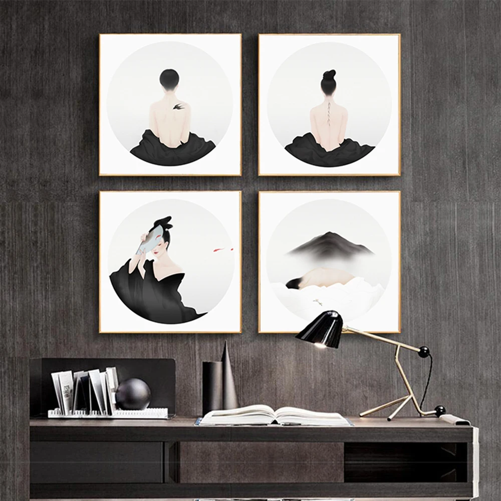 Китайские чернила дзен Круг Живопись чернила брызги постер Искусство Печать холст картина Картина для гостиной Съемный Декор настенные наклейки