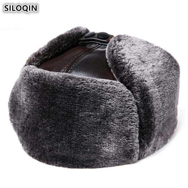 SILOQIN Мужская бычья кожа, супер теплая мужская зимняя меховая шапка, толстые бархатные шапки-бомберы, шапки из натуральной кожи, Лыжная шапка