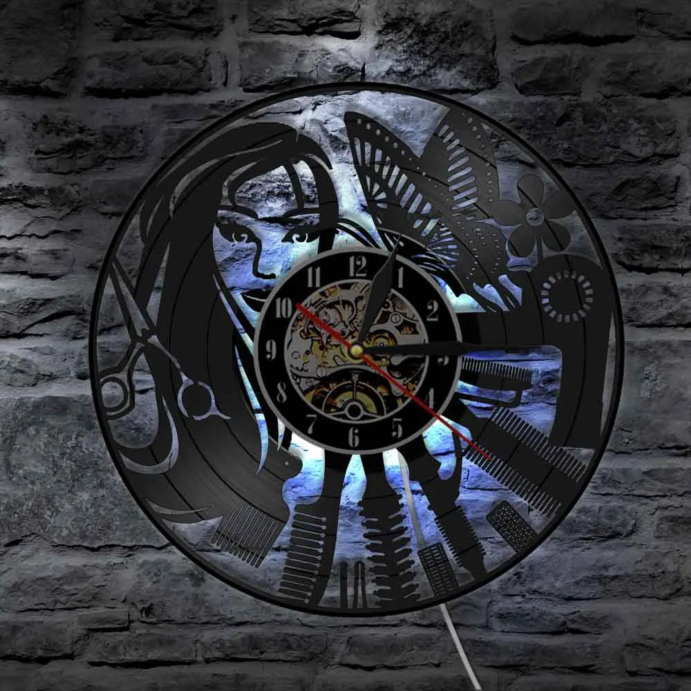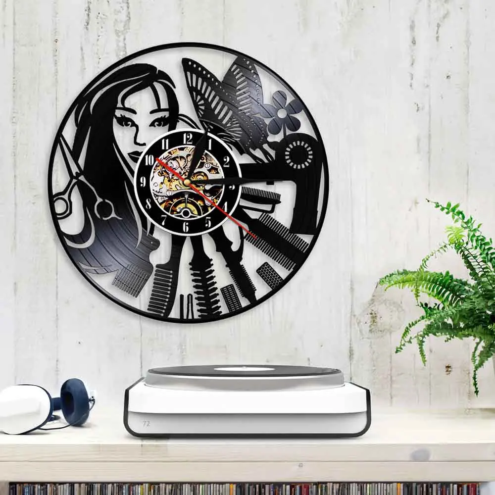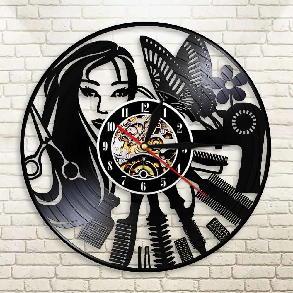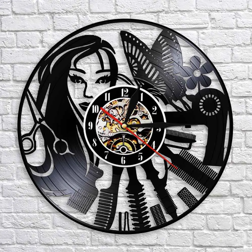Вывеска для парикмахерской бесшумные настенные часы для парикмахерской салона красоты виниловые часы для парикмахерской Настенный декор