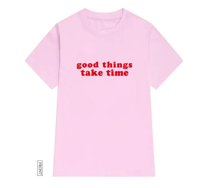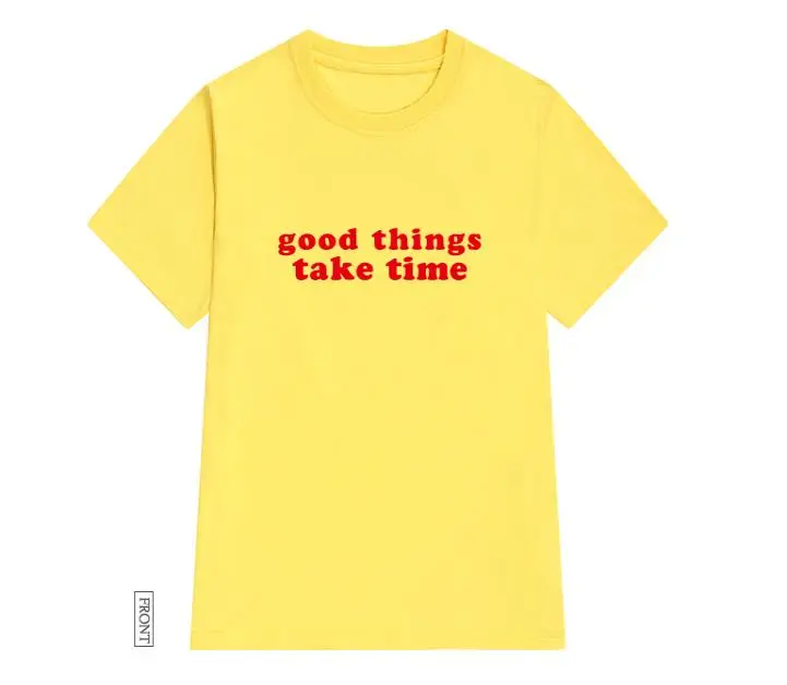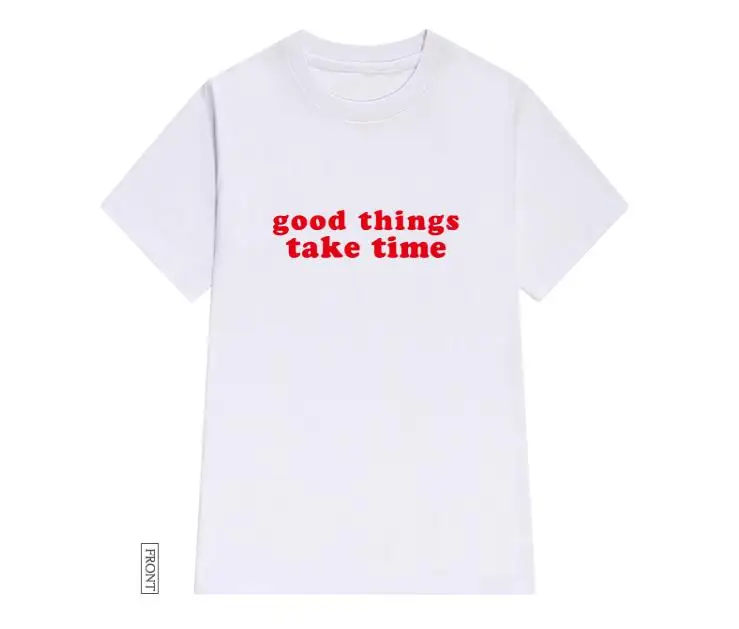 Хороших вещей требует времени с красным принтом для женщин футболки хлопок повседневное забавная Футболка для леди верхний тройник битник Прямая поставка NA-631