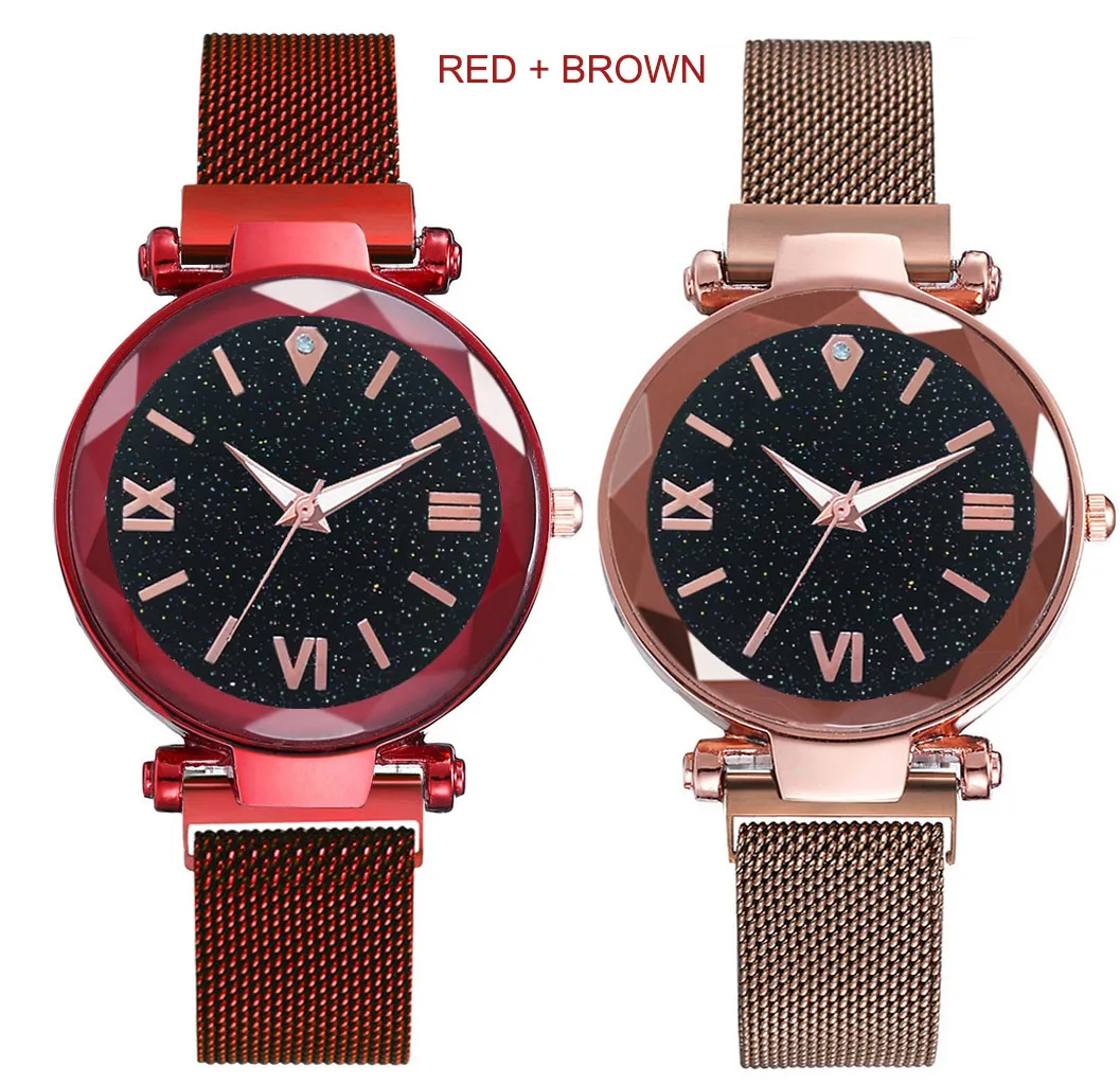 Часы женские кварцевые с магнитной застежкой, популярный комплект, с изображением звездного неба