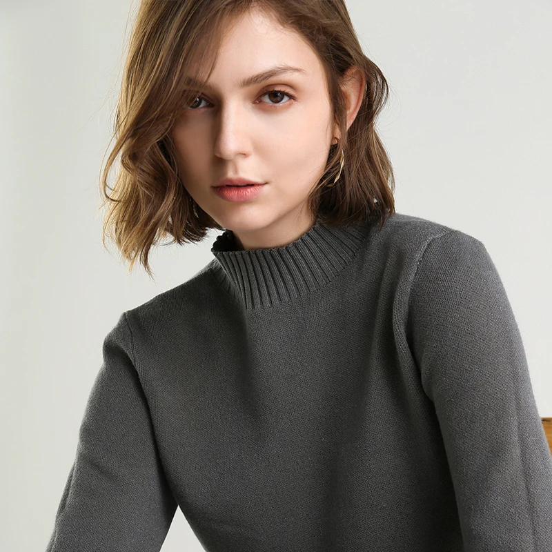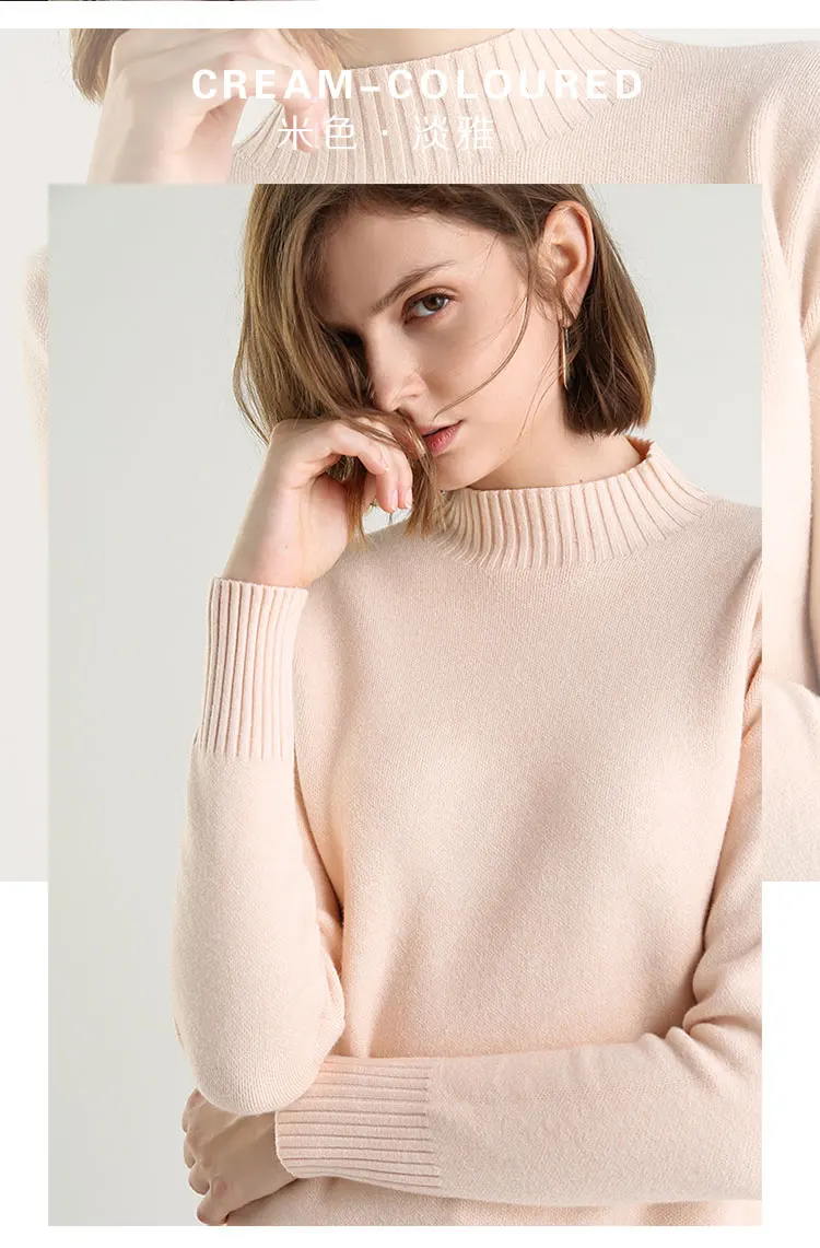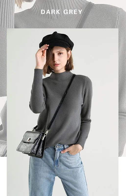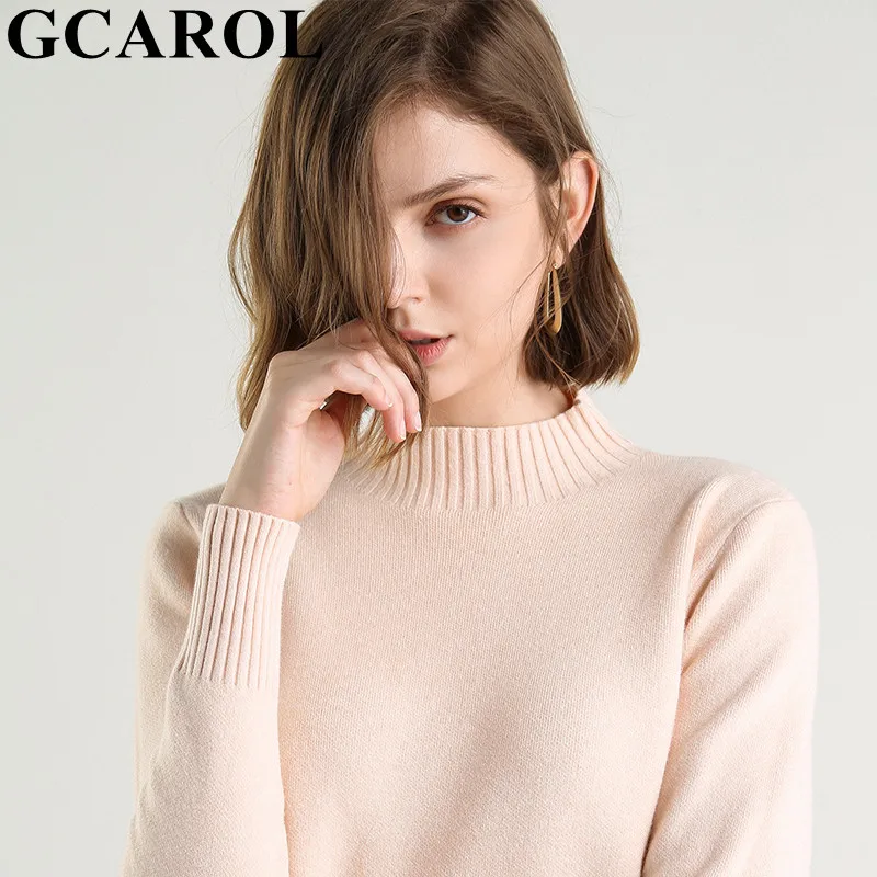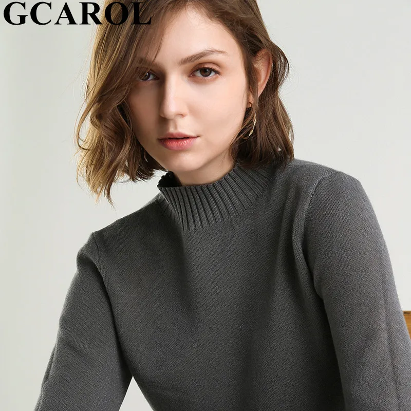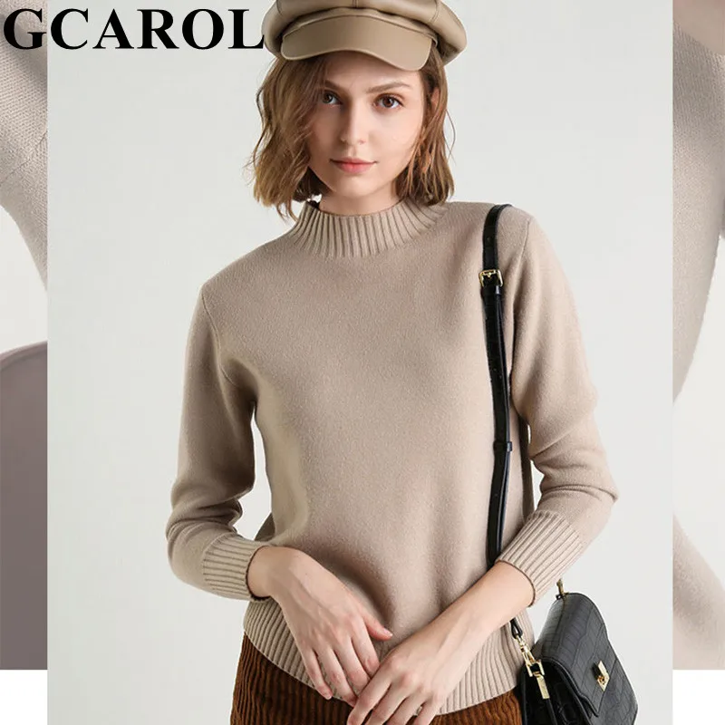 Женский свитер с воротником GCAROL, трикотажная водолазка с невысоким воротником и содержанием шерсти 30%, толстый пуловер в стиле минимализма, вязаный джемпер большого размера для осени и зимы