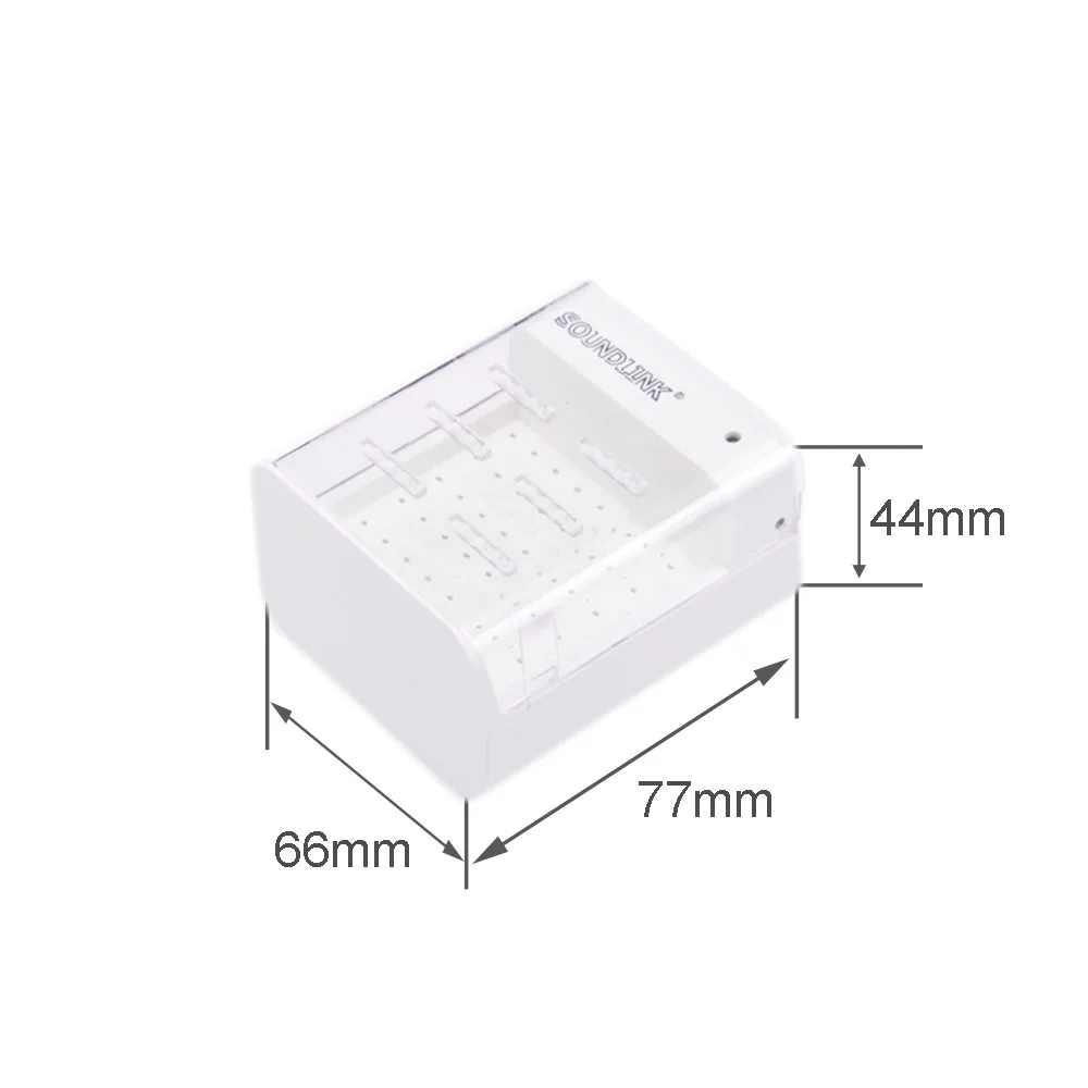 Бренд: SoundlinkПоставляется с: сушильный чехол, шнур питания и руководство пользователяРабочая температура: 45 ℃ ± 5 ℃Слуховые аппараты-это точные электронные продукты, которые требуют строгого использования. Из-за неизбежного загрязнения пота и воска при ежедневном использовании бактерии и вирусы легко размножаются и могут быть вредны для здоровья человека. Поэтому сушка и чистка слуховых аппаратов особенно необходимы.Soundlink электронный сушильный чехол специально разработан для сушки слуховых аппаратов и других современных электронных продуктов, а также предотвращает повреждение высококлассной электроники от воздействия влаги.Время сушки по умолчанию составляет 8 часов