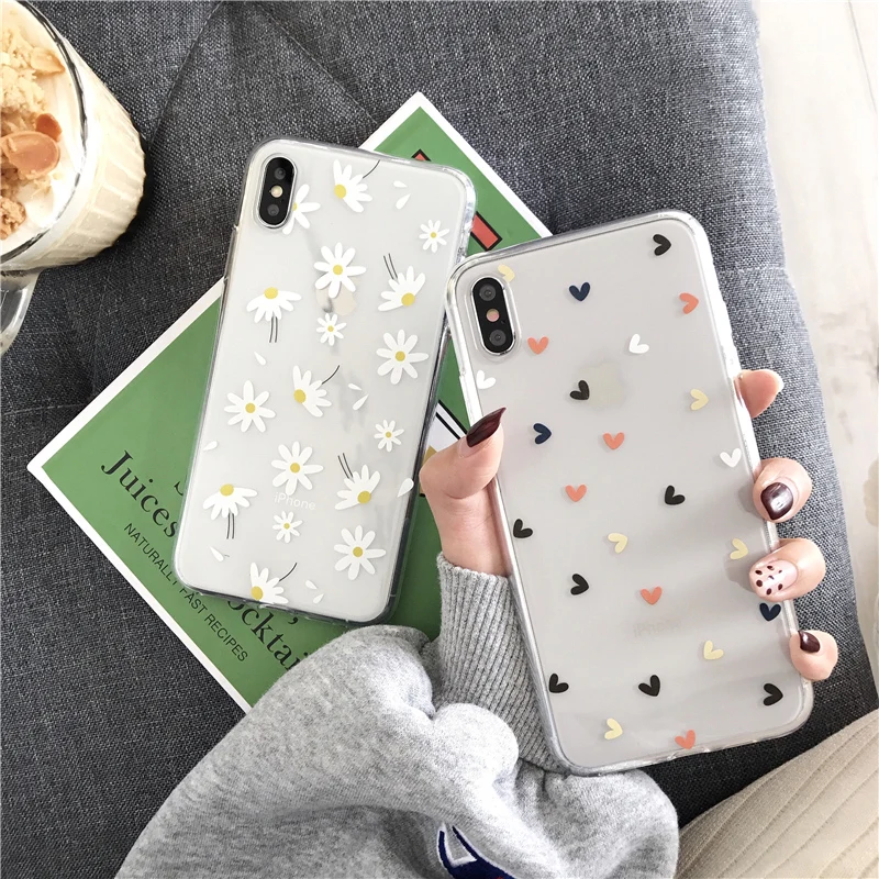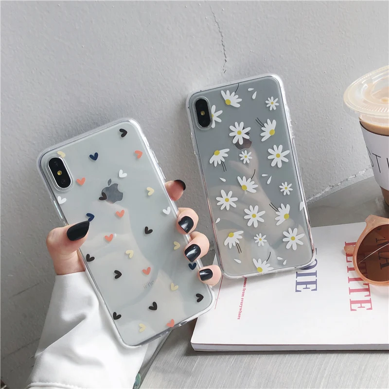 Прозрачный чехол Ottwn для телефона iPhone 11 Pro 12 13 Pro Max 7 8 Plus XS XR X, мягкий силиконовый чехол-накладка с сердечками, маргаритками и цветами