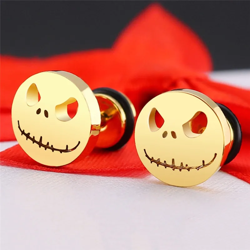 Женские круглые серьги Pinksee, из нержавеющей стали, в виде тыквы, смайликов, украшения в стиле панк, хип-хоп