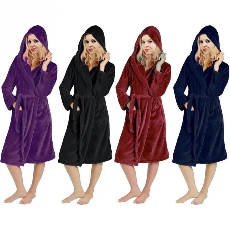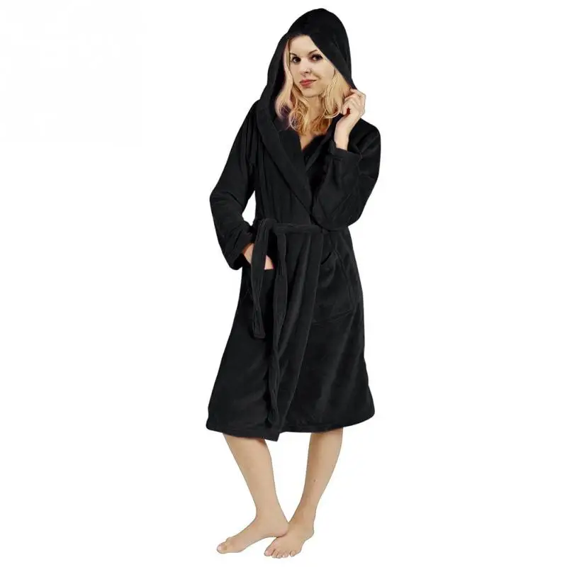 Женское утепленное платье зимняя теплая ночная рубашка с длинным рукавом с капюшоном женская ночная рубашка Женское ночное белье